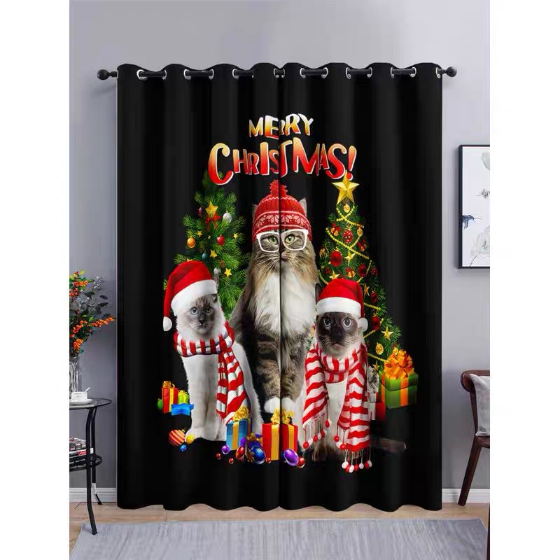santa claus shading curtain customized digital printing black silk layer stainless steel punching sunshade cloth curtain cross-border manufacturer 中文版