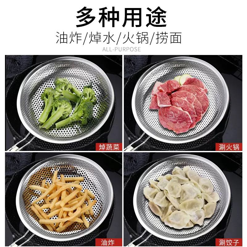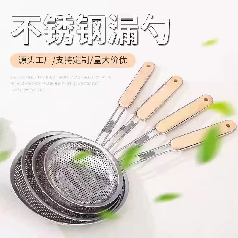 stainless steel colander strainer spoon wooden handle punching oil grid filter kitchen tools strainer thickened oil dipper hot pot slotted ladle colander
