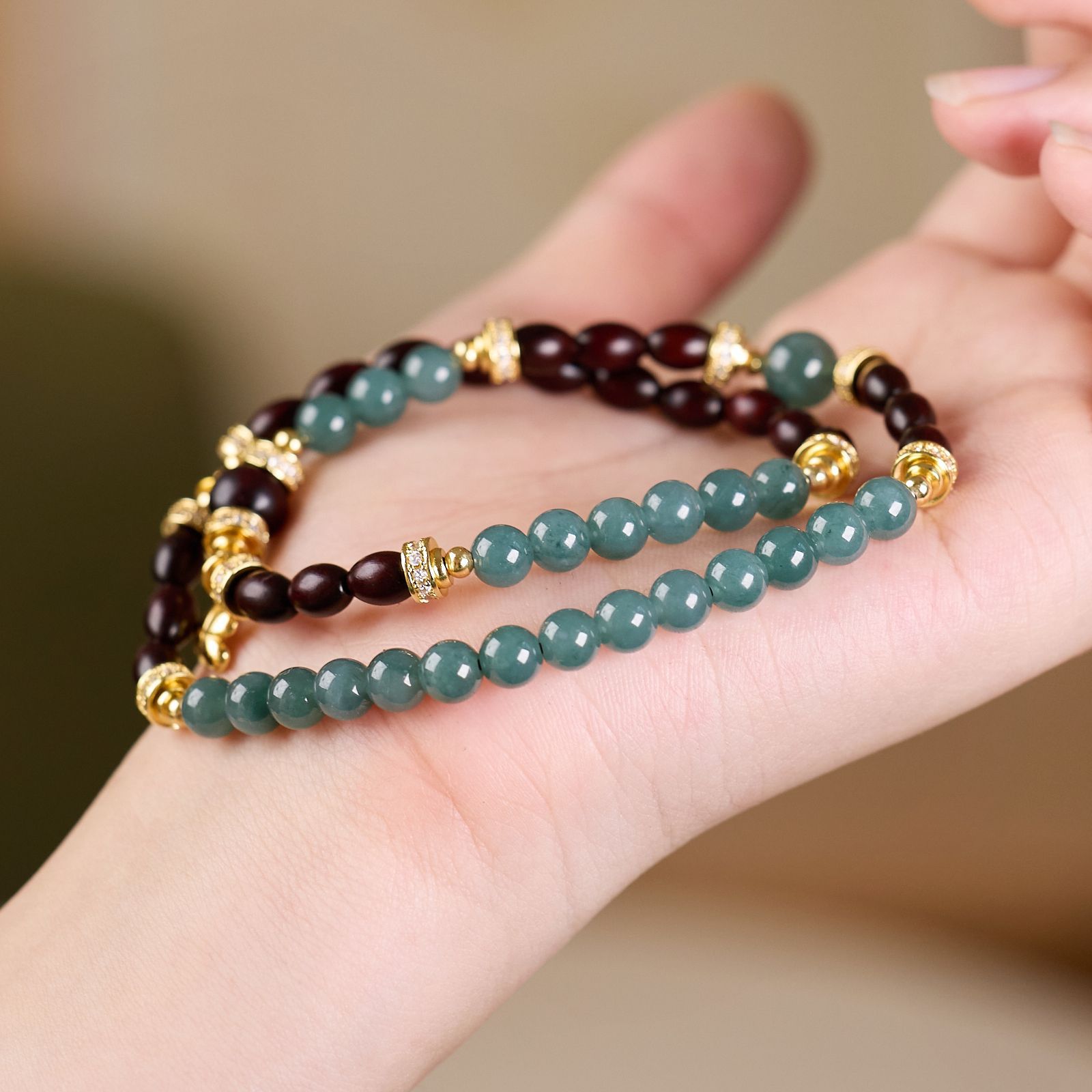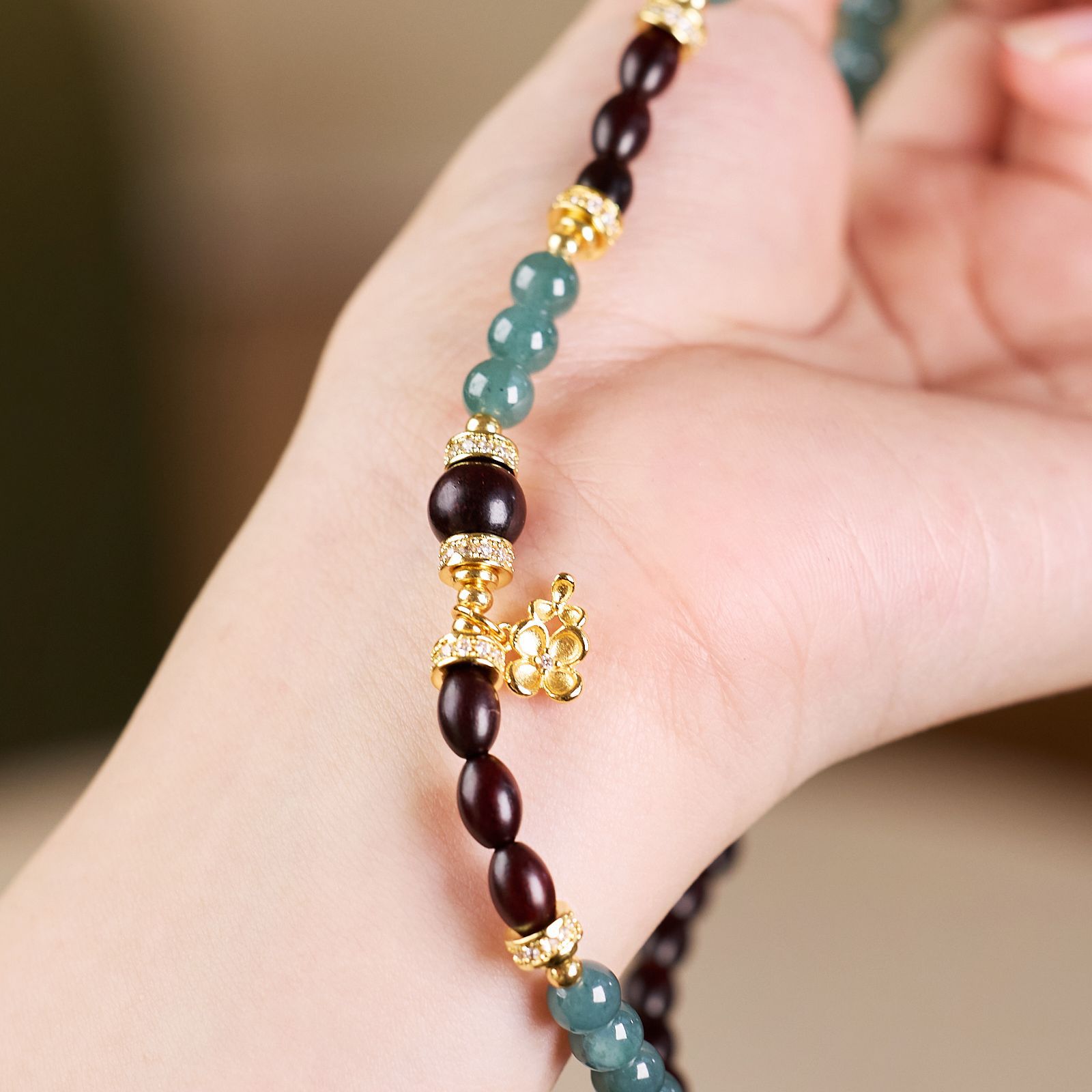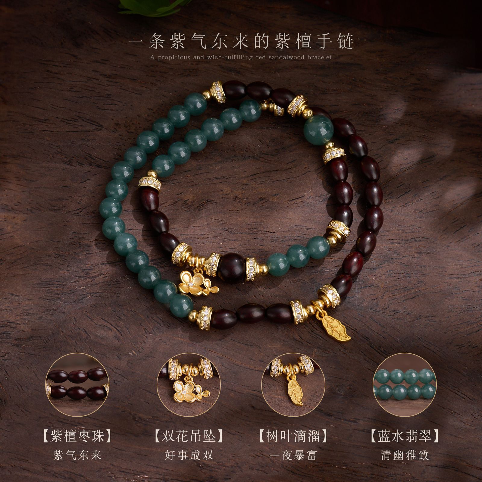 |主材|蓝水翡翠,小叶紫檀枣珠,铜镀金配件