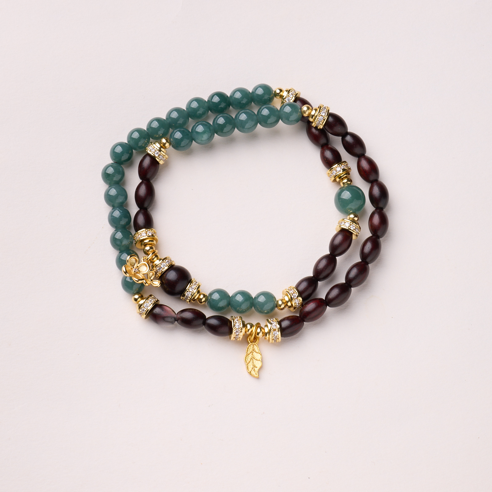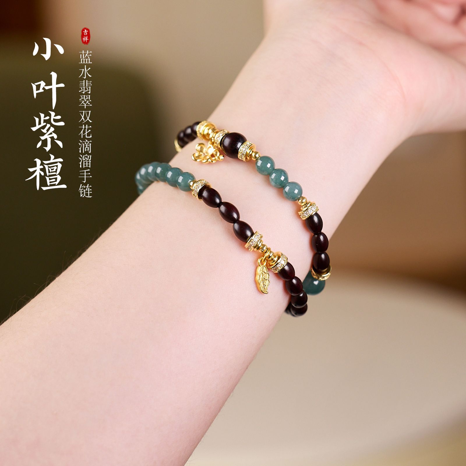 |名称|6MM蓝水翡翠 小叶紫檀枣珠 双花滴溜双圈手链