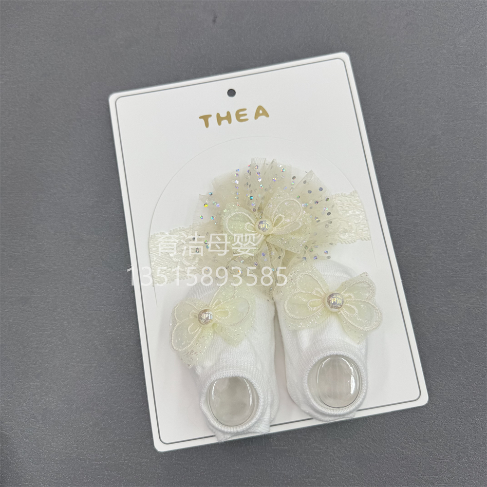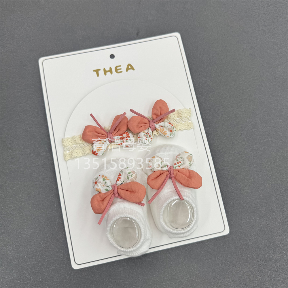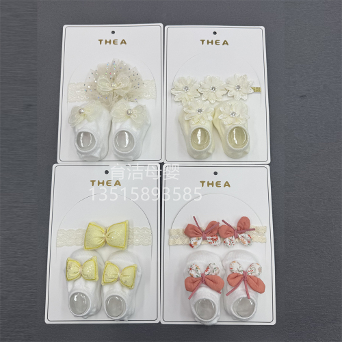 foreign trade baby bow cartoon headband room socks set breathable hollow lace hair band socks set 中文版
