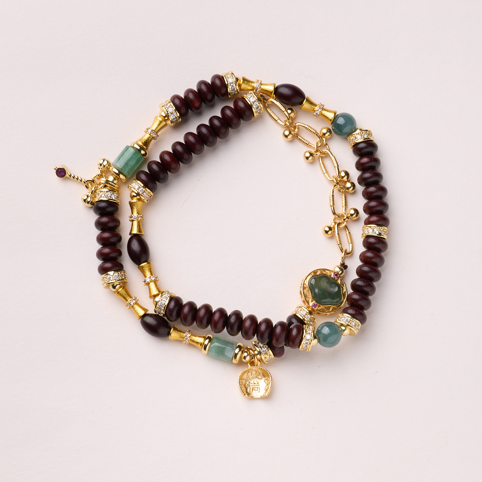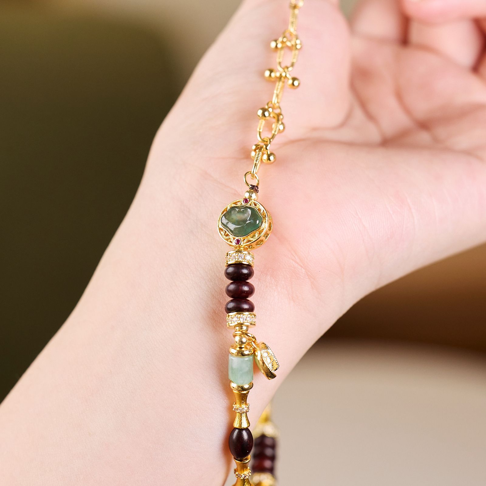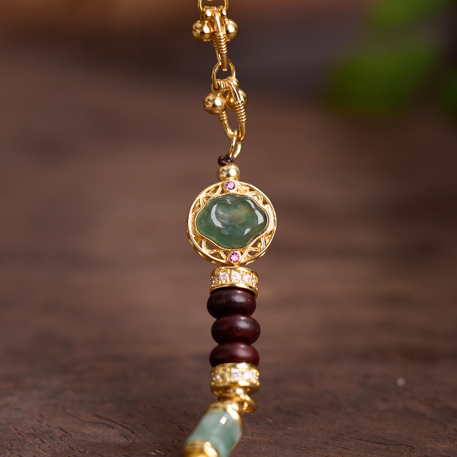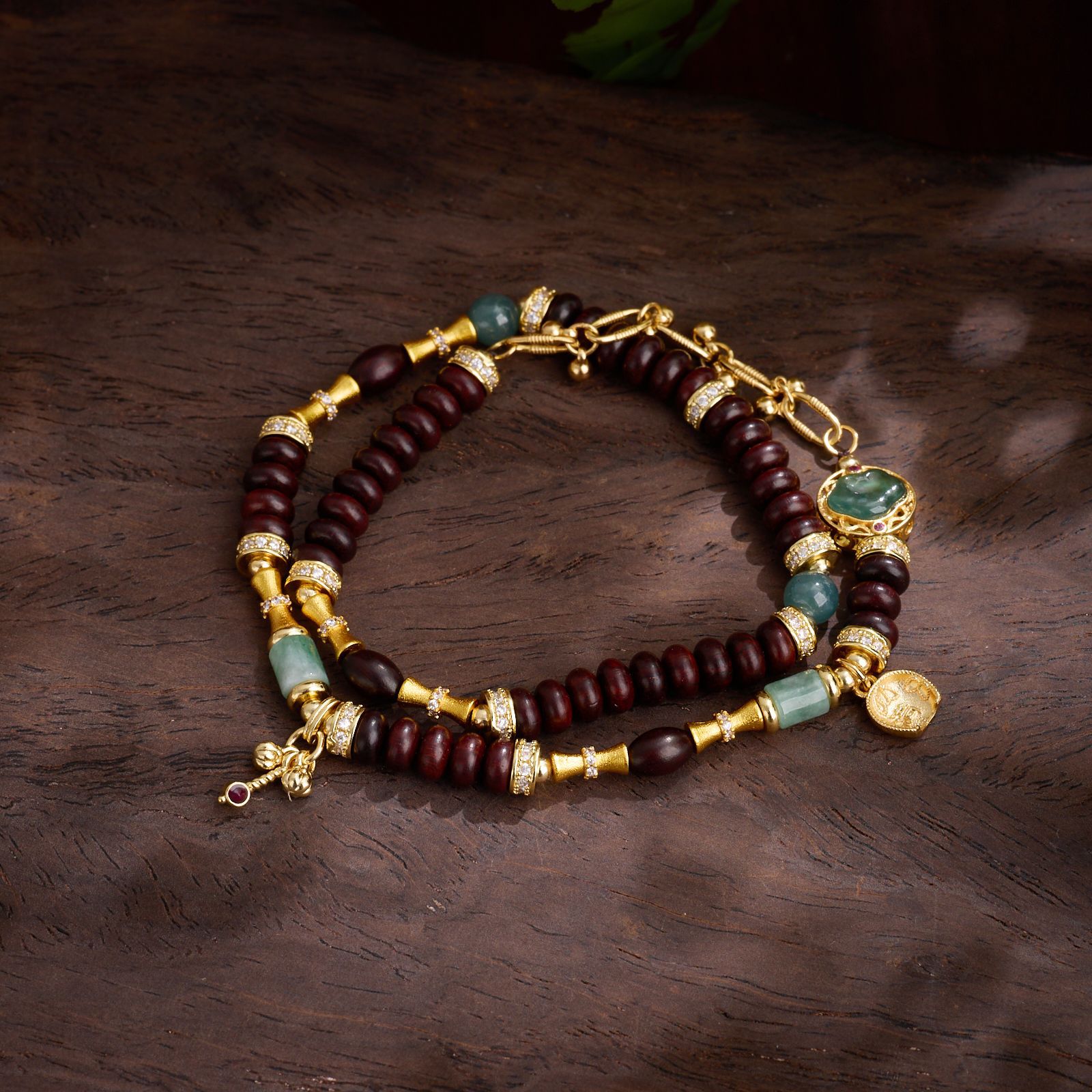 |主材|小叶紫檀算盘珠,蓝水翡翠,铜镀金配件