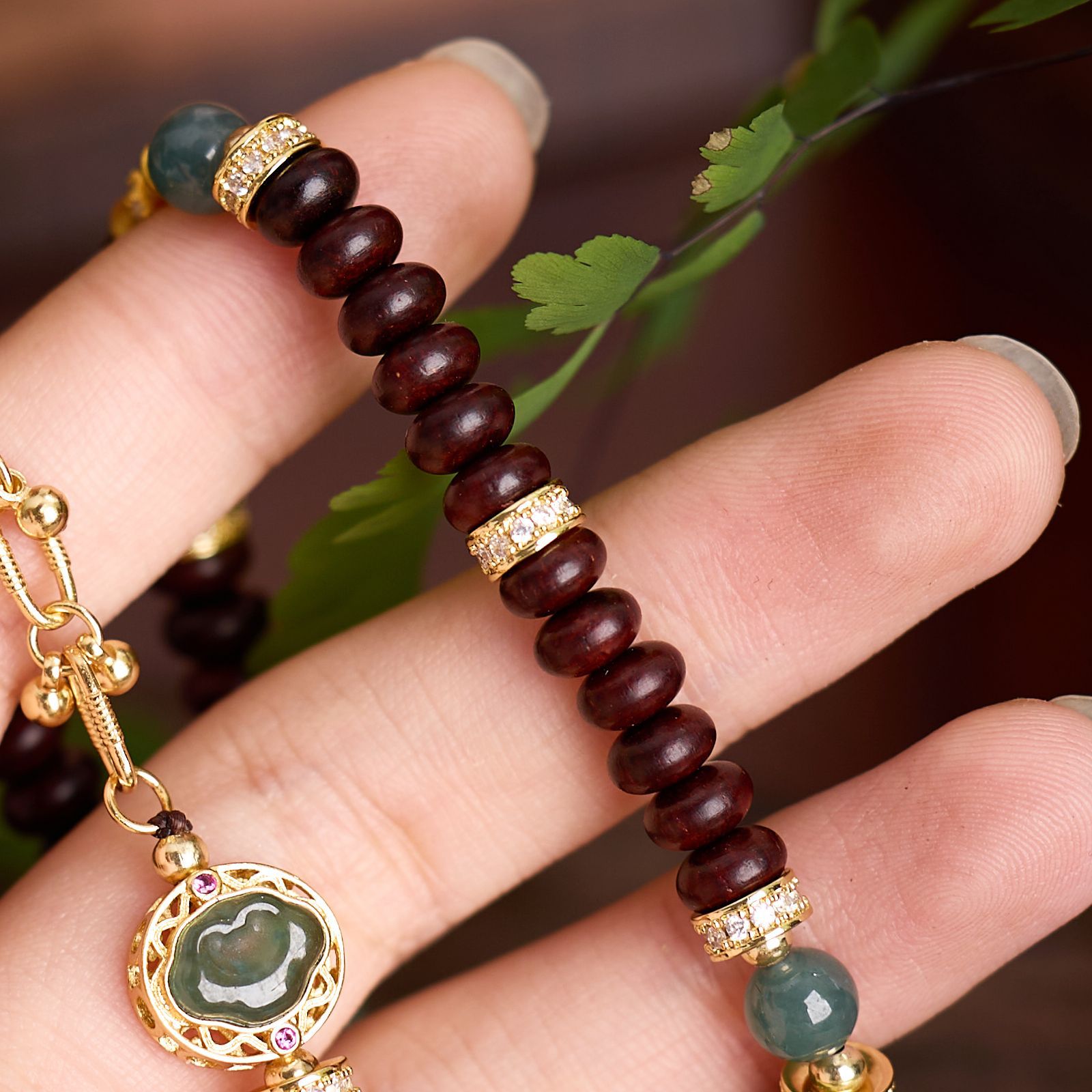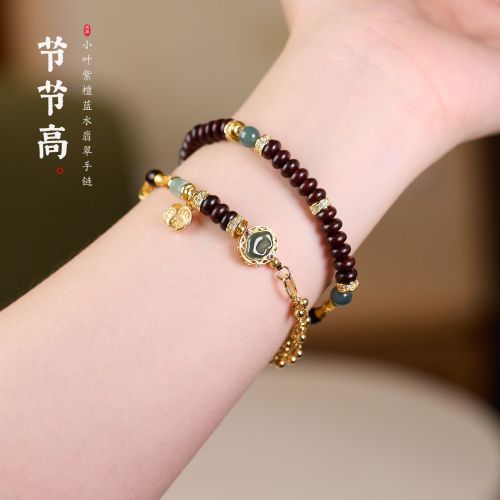 |名称|4*6MM小叶紫檀算盘珠 蓝水翡翠 锆石竹节 双圈手链
