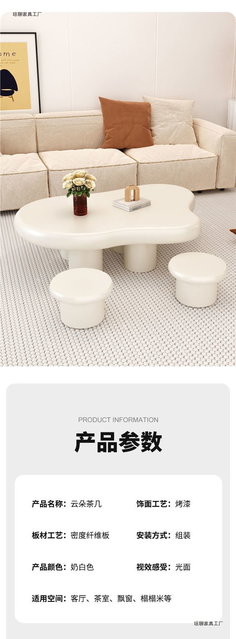 cloud stool cream color-length 30 * width 25 height 25