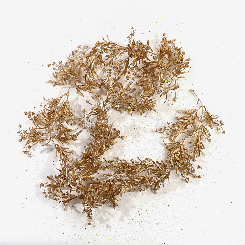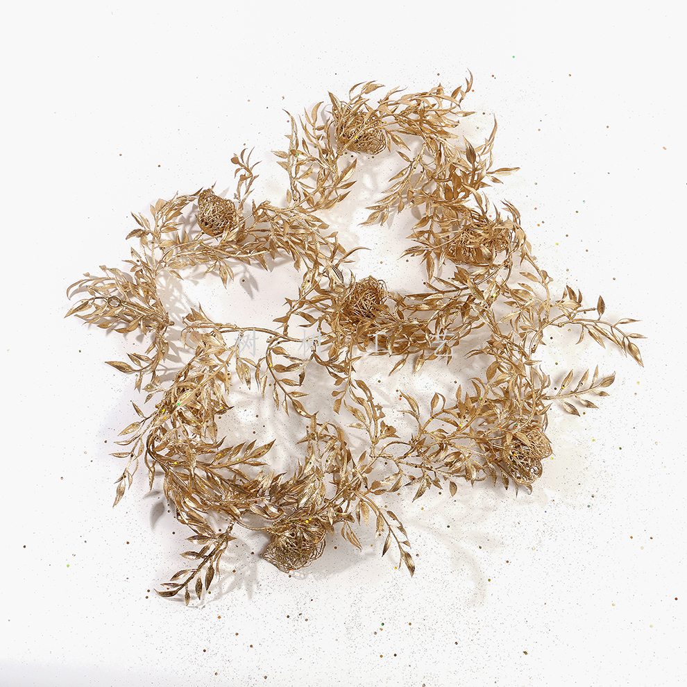 artificial plastic simulation christmas pine needle wall hanging rattan new year showcase decoration home dining table gold ornaments 中文版