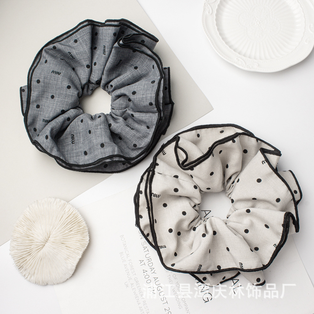 korean style original homemade cold wind autumn and winter large intestine hair ring miu polka dot double layer 17cm oversized cloth headdress flower 中文版