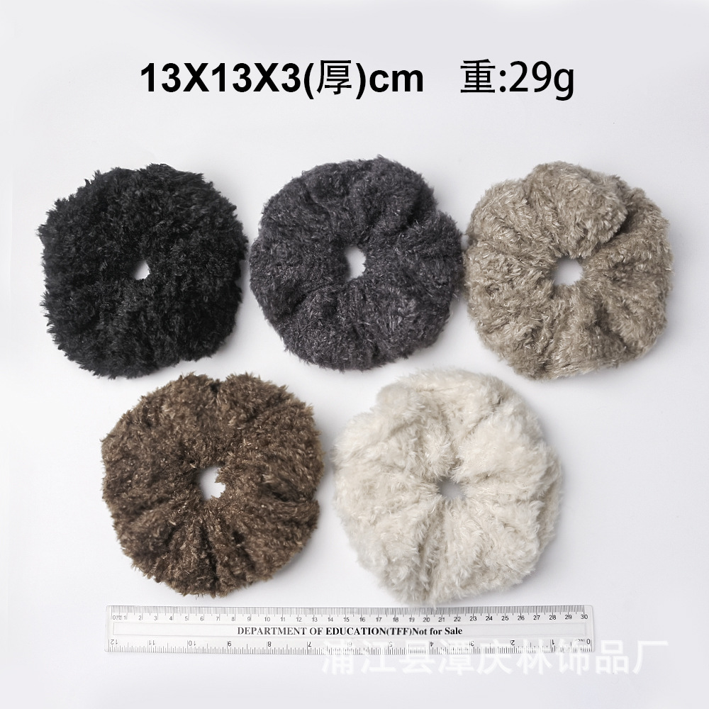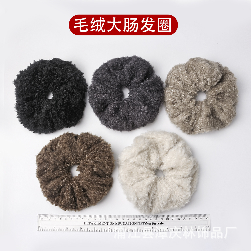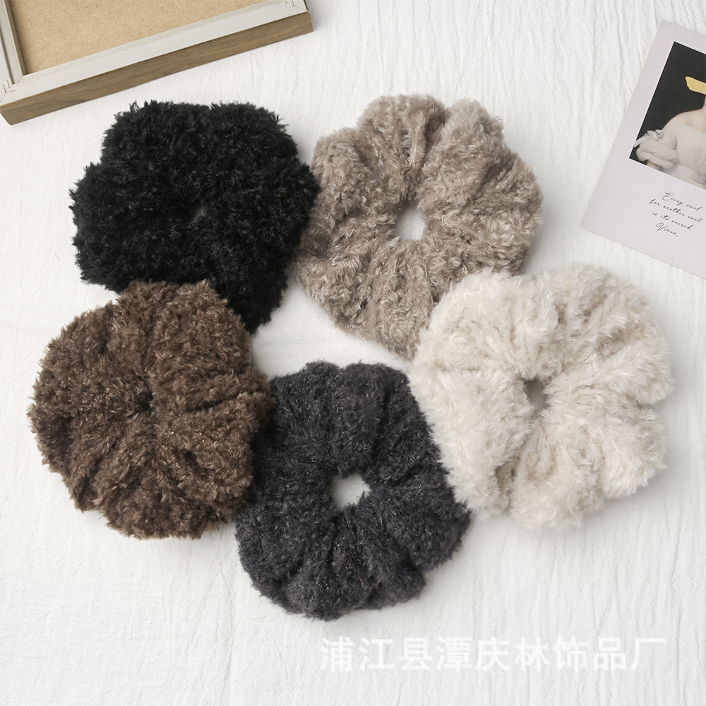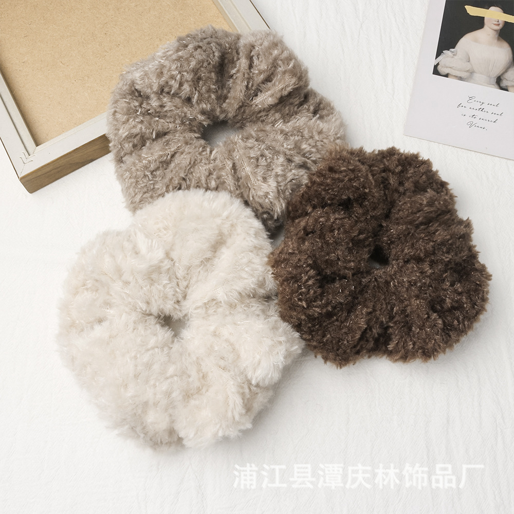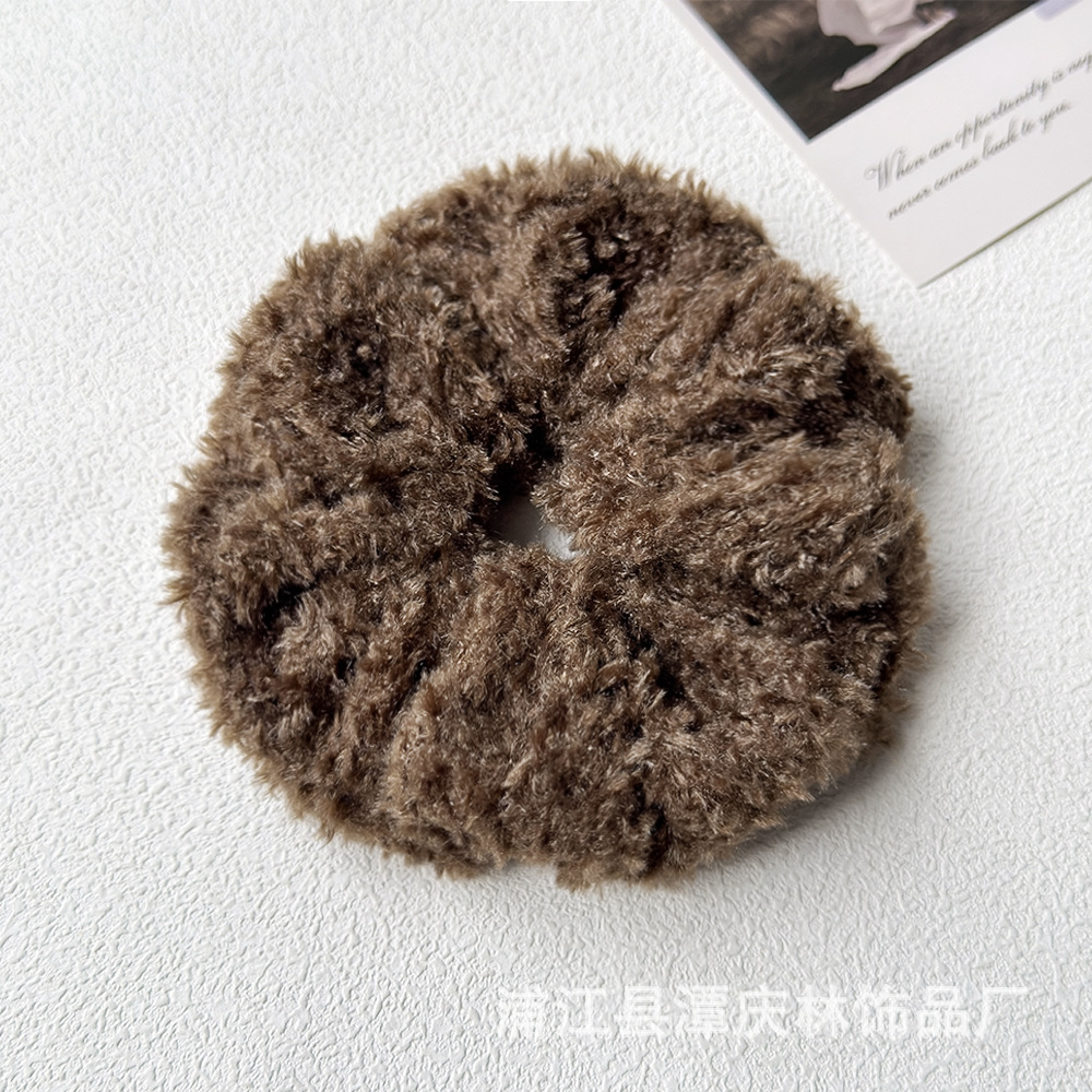 autumn and winter coffee color teddy plush plush large intestine hair ring high sense idle style korean style all-matching graceful hair rope hair accessories 中文版