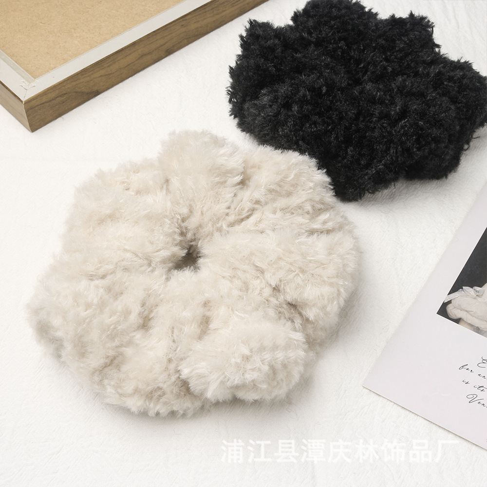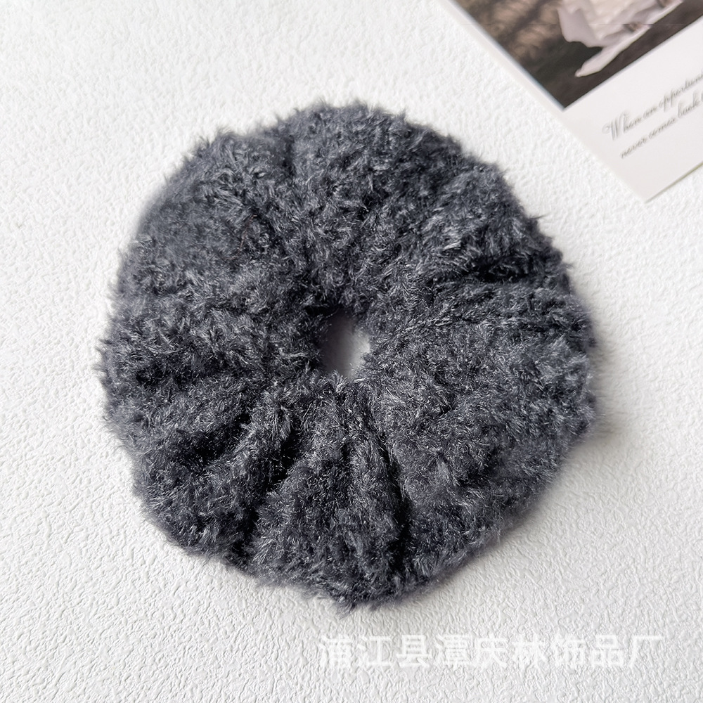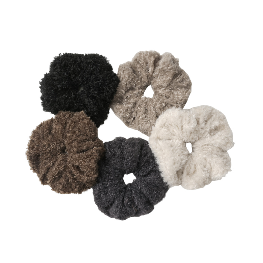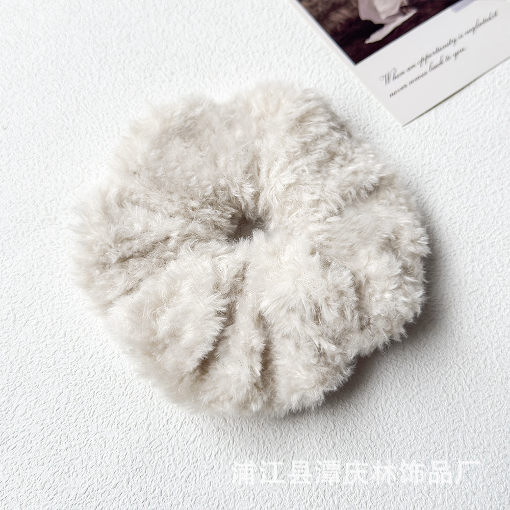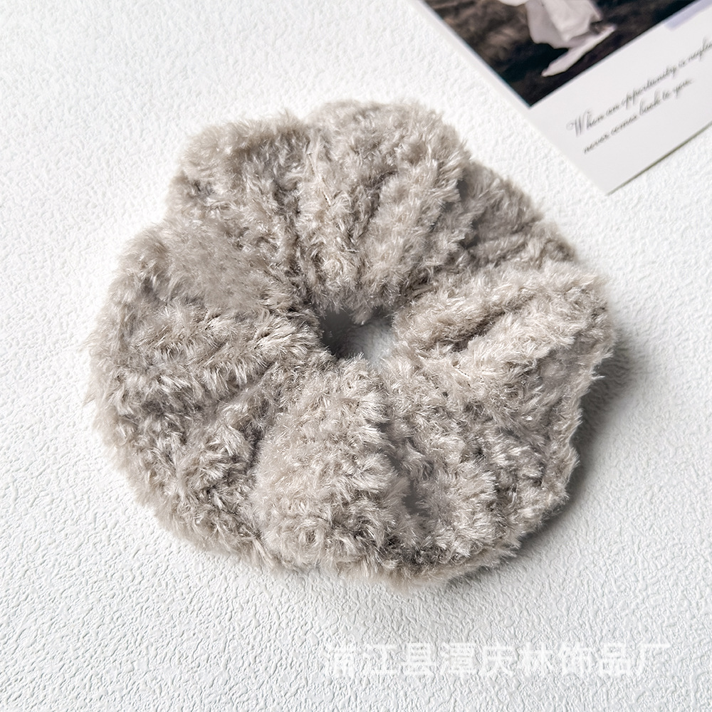 autumn and winter coffee color teddy plush plush large intestine hair ring high sense idle style korean style all-matching graceful hair rope hair accessories 中文版