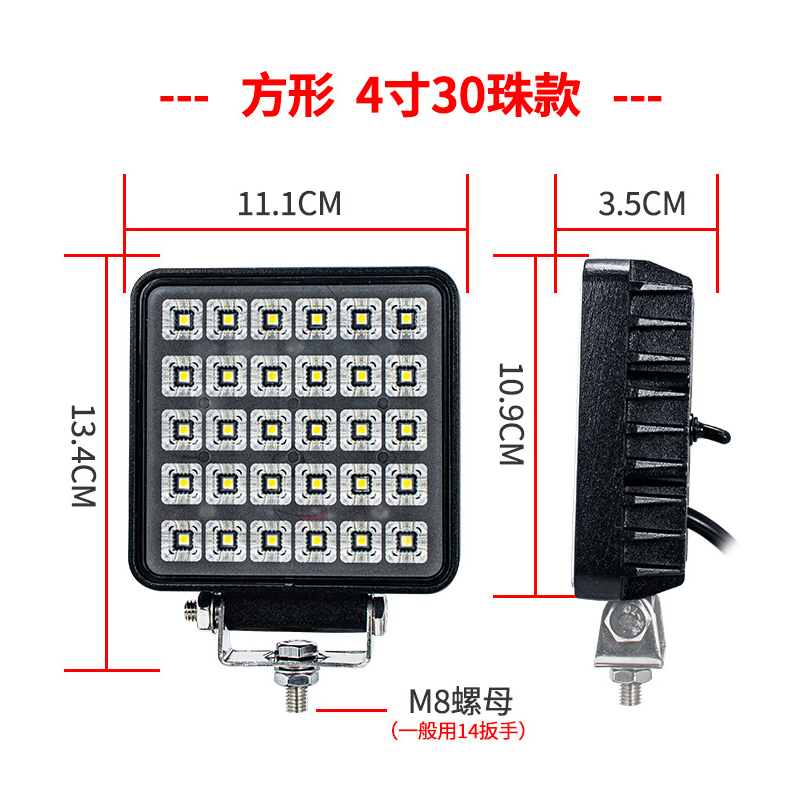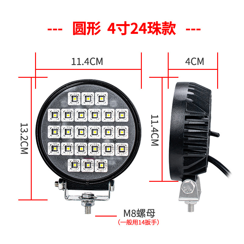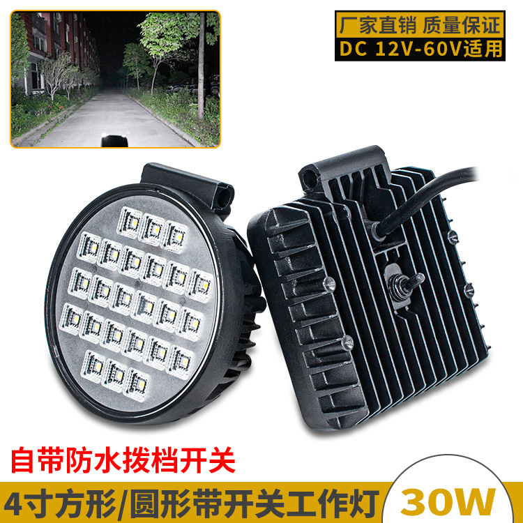 aluminum case led work light with waterproof switch 4-inch square excavator astigmatism arm light round forklift modified headlight 中文版