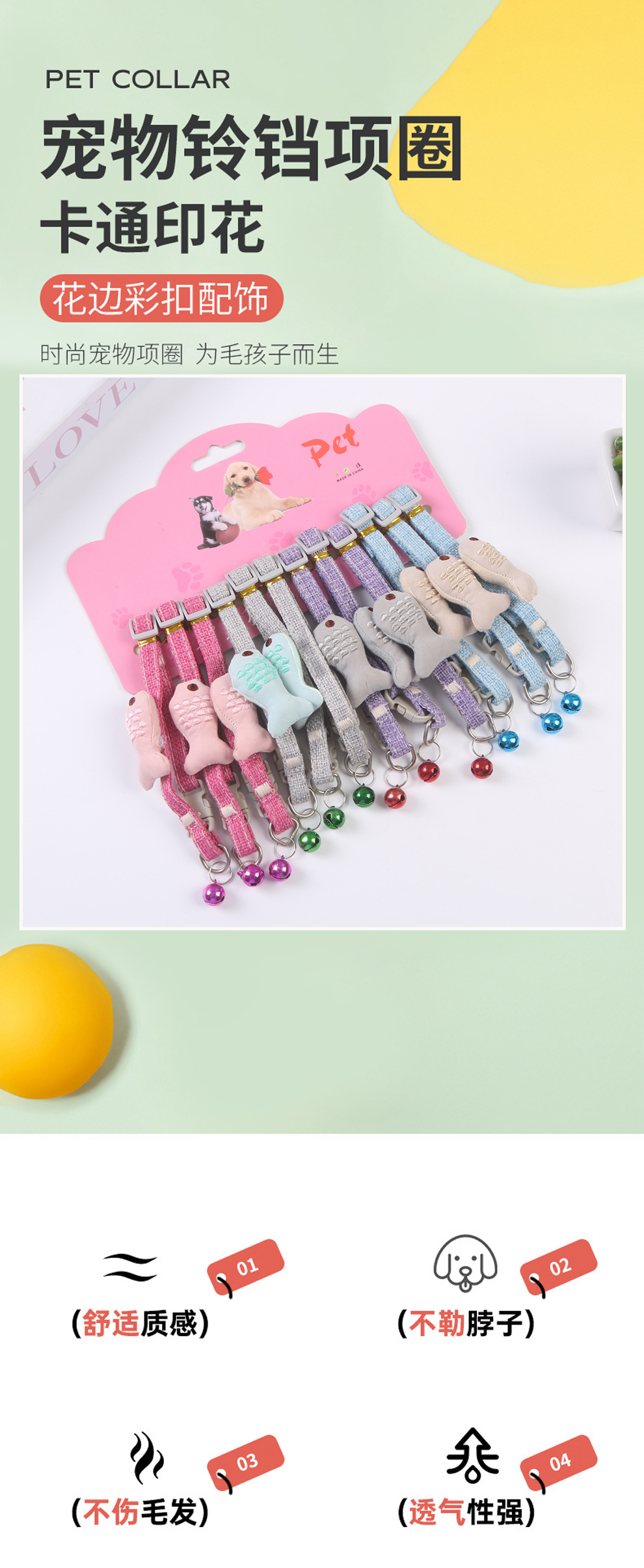 产品名称:厂家直供彩色宠物带铃铛装饰用项圈 12条/卡多色混装猫狗脖圈套装