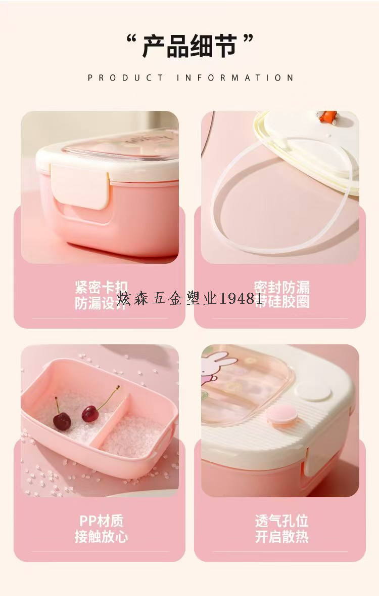 Material: main body, large lid, tableware: food grade PP, small cover PS, silicone ring, silicone air roof