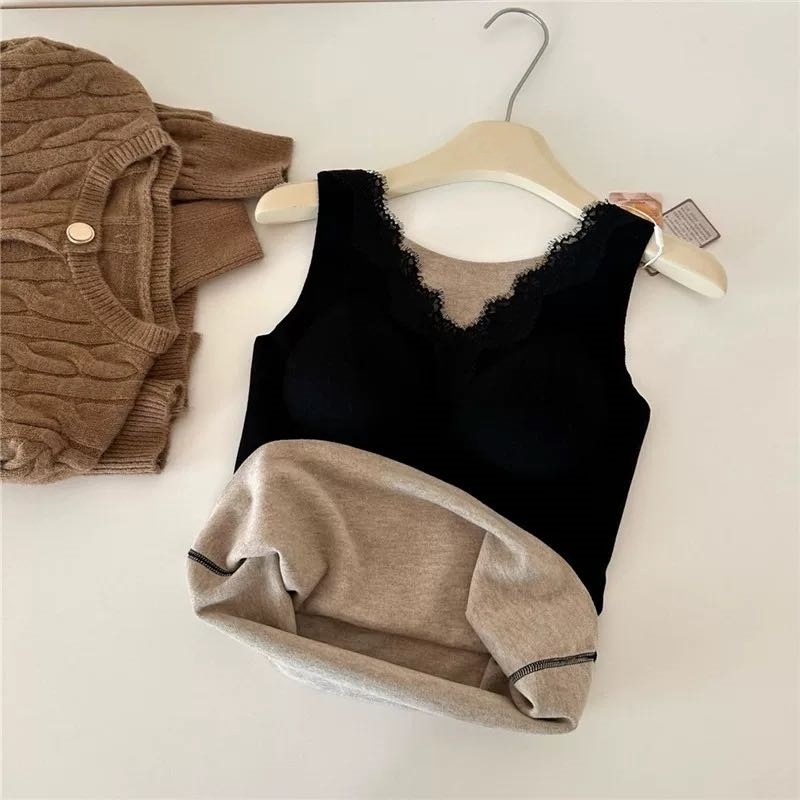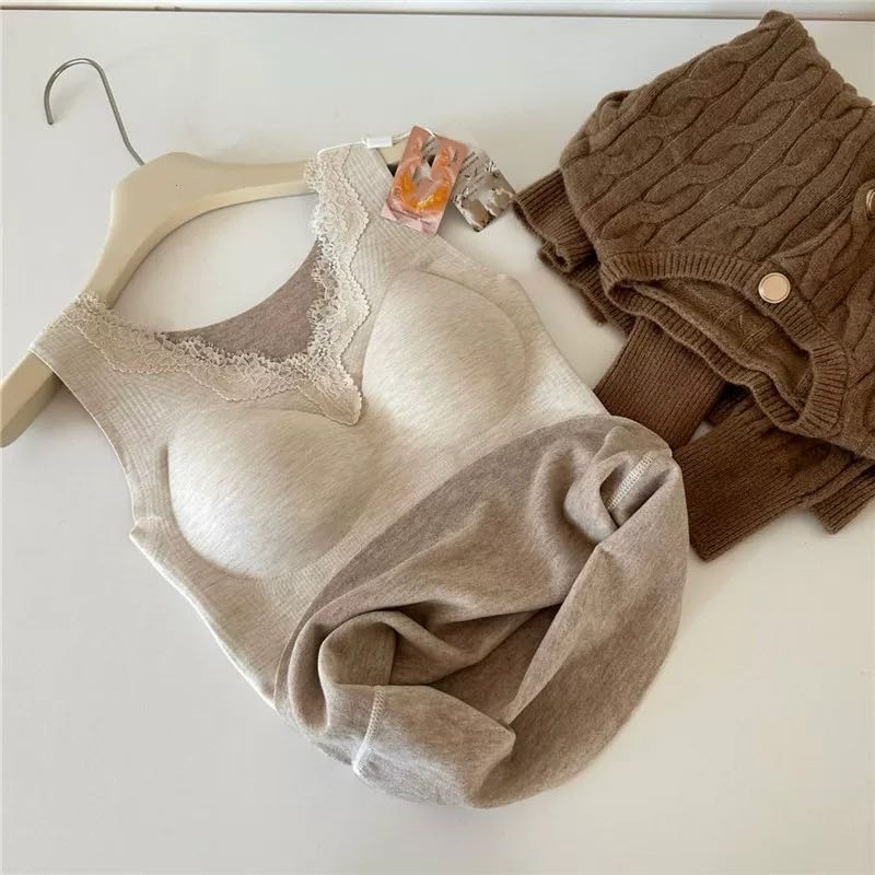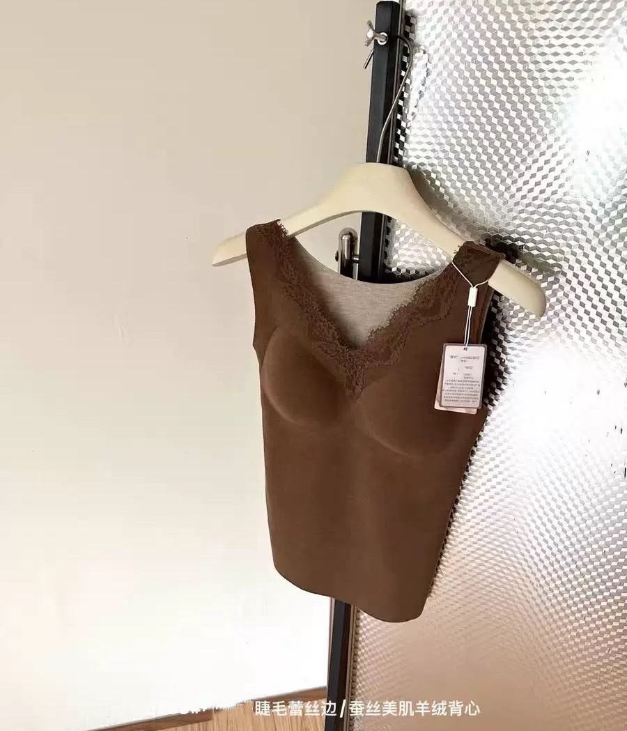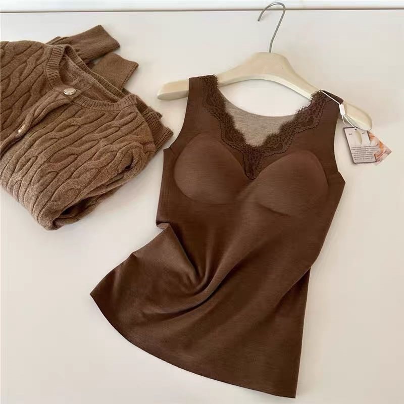 autumn and winter v-neck lace cashmere thermal vest chest pad integrated wireless inner wear base seamless back shaping bra 中文版