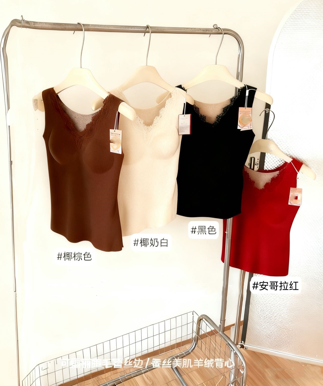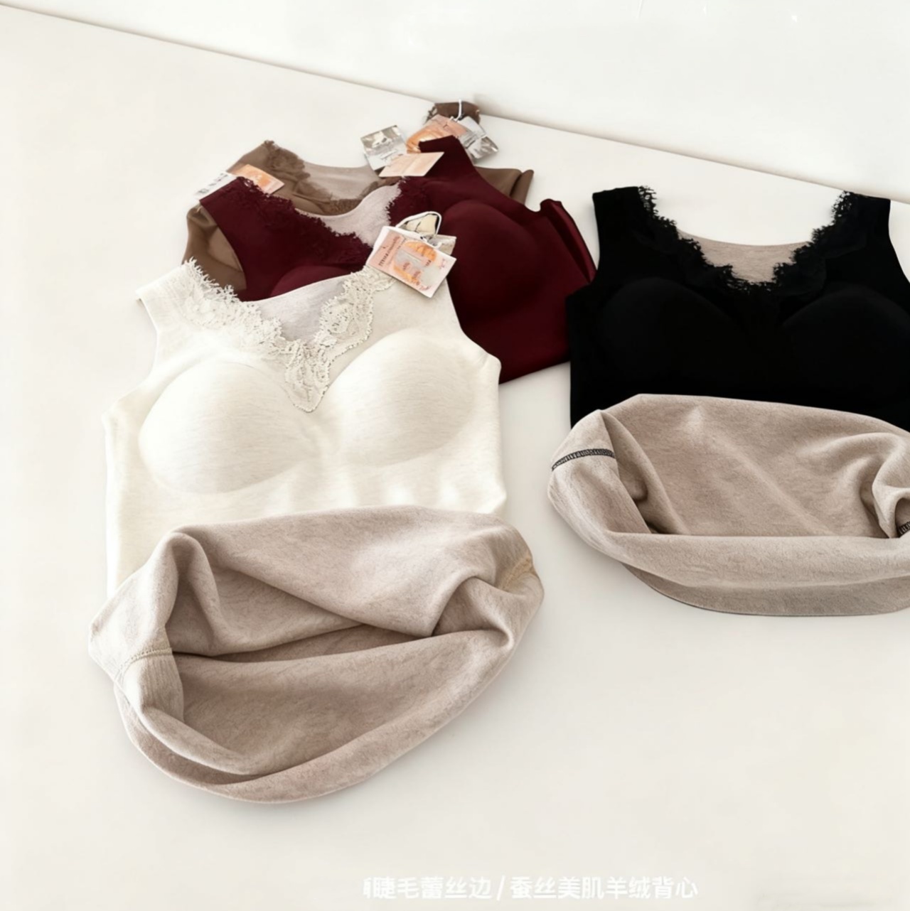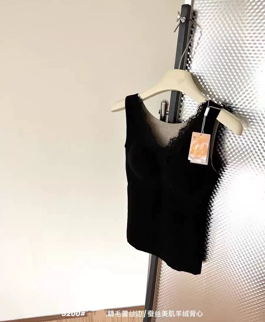 autumn and winter v-neck lace cashmere thermal vest chest pad integrated wireless inner wear base seamless back shaping bra 中文版