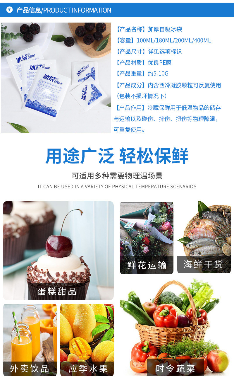 self-absorbent ice pack factory wholesale no water injection fresh-keeping refrigerated express dedicated fresh food aviation cold preservation ice pack 中文版