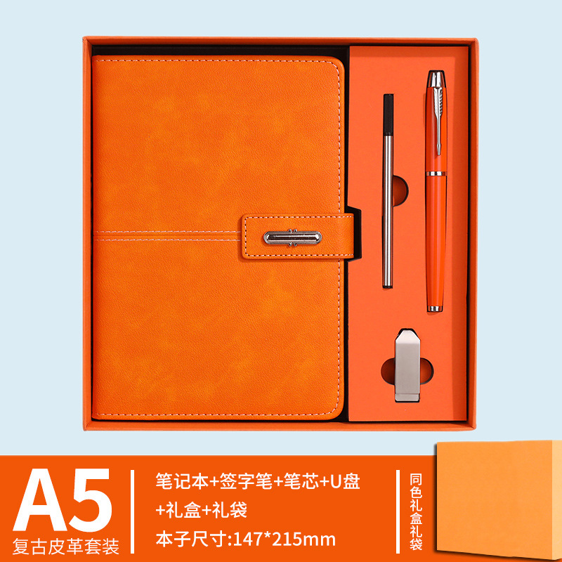 [gift box] a5 orange + pen + usb flash disk