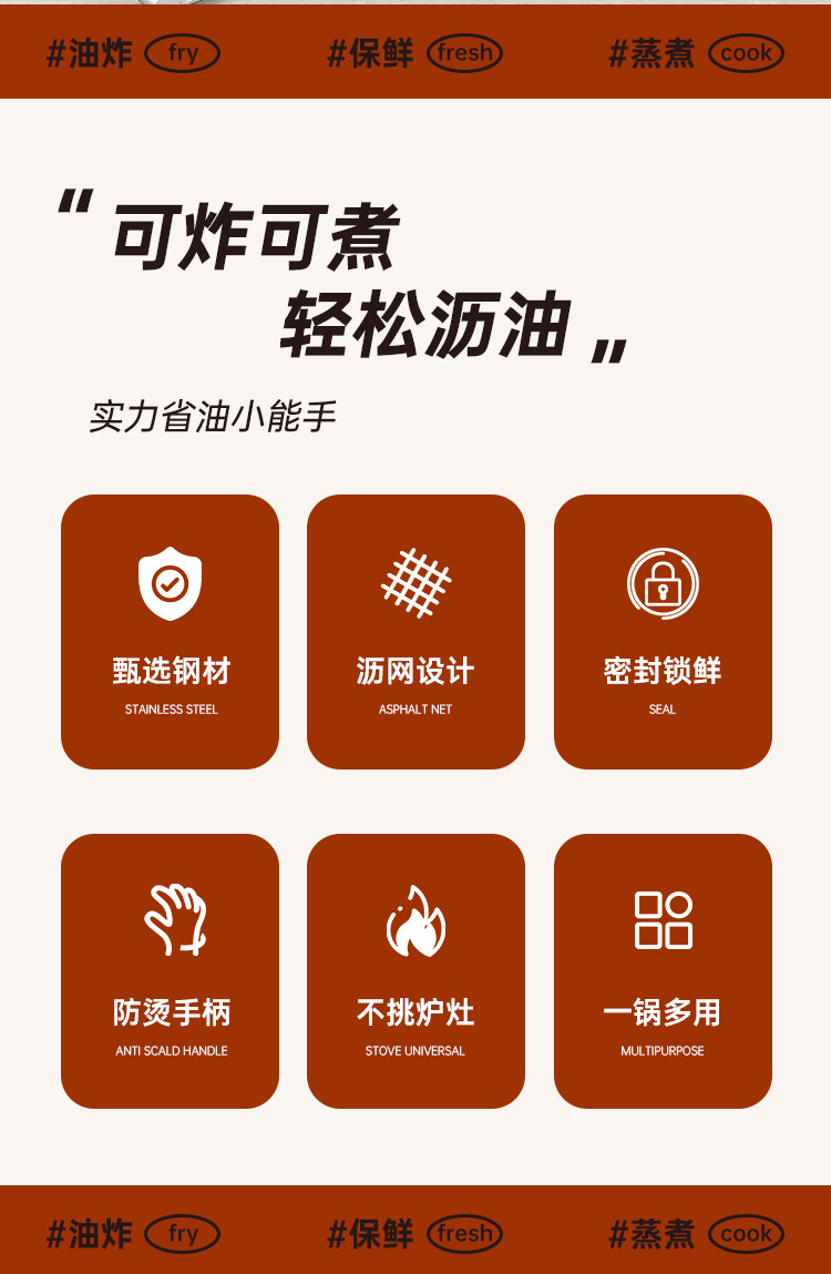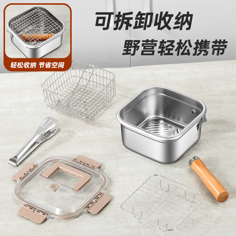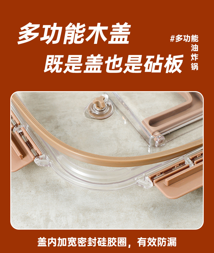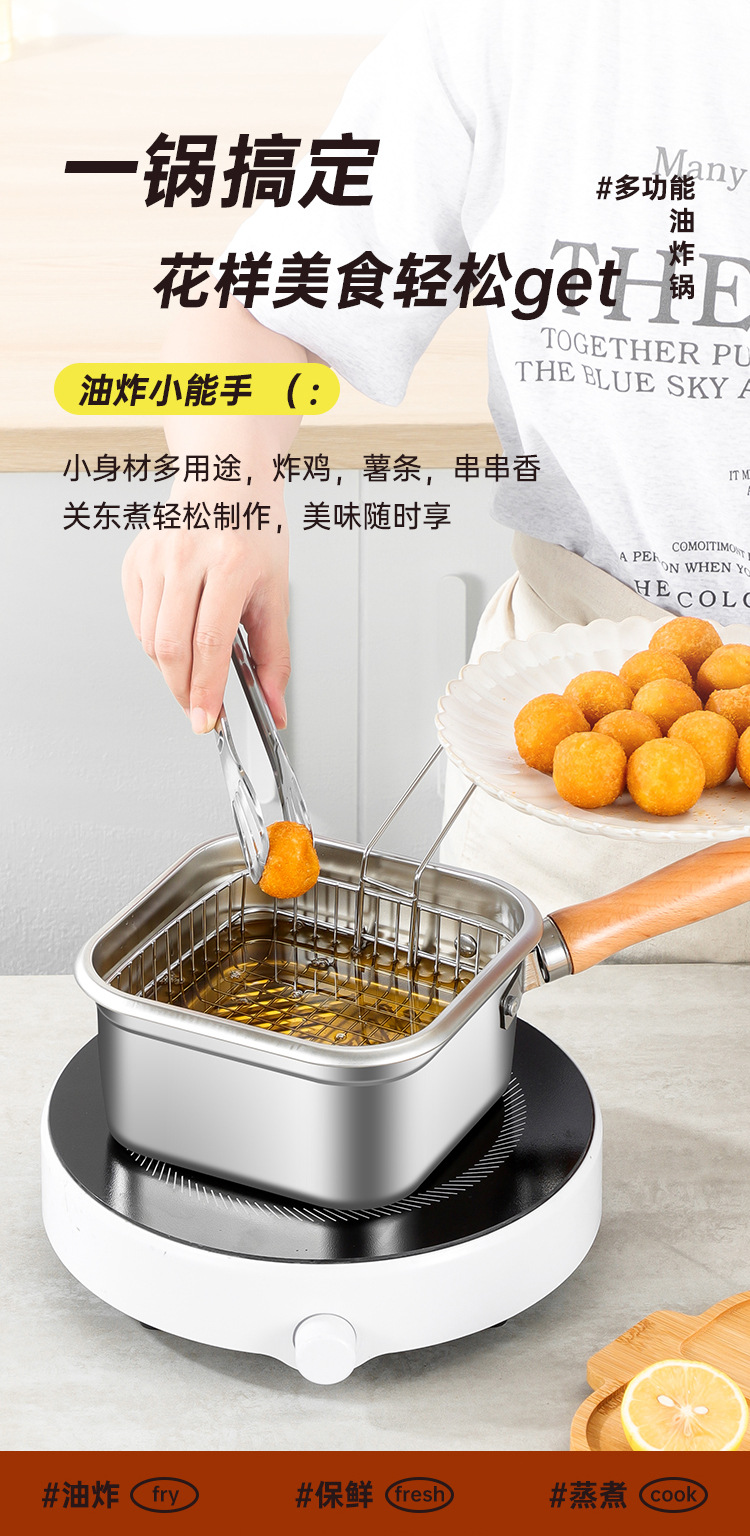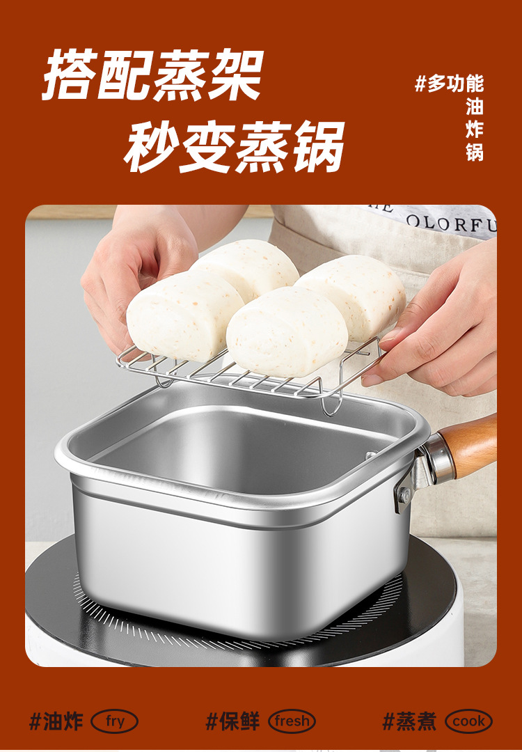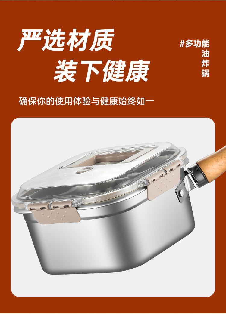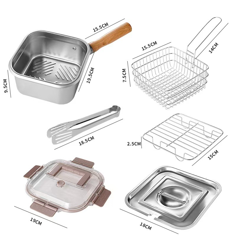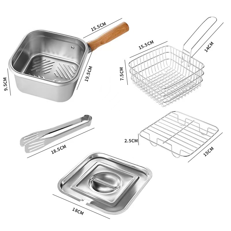 square deep frying pan [frying basket + oil draining rack + clip] transparency cover + steel cover