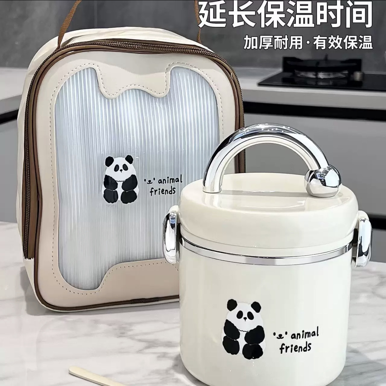 (panda) double-layer lunch box + thermal bag