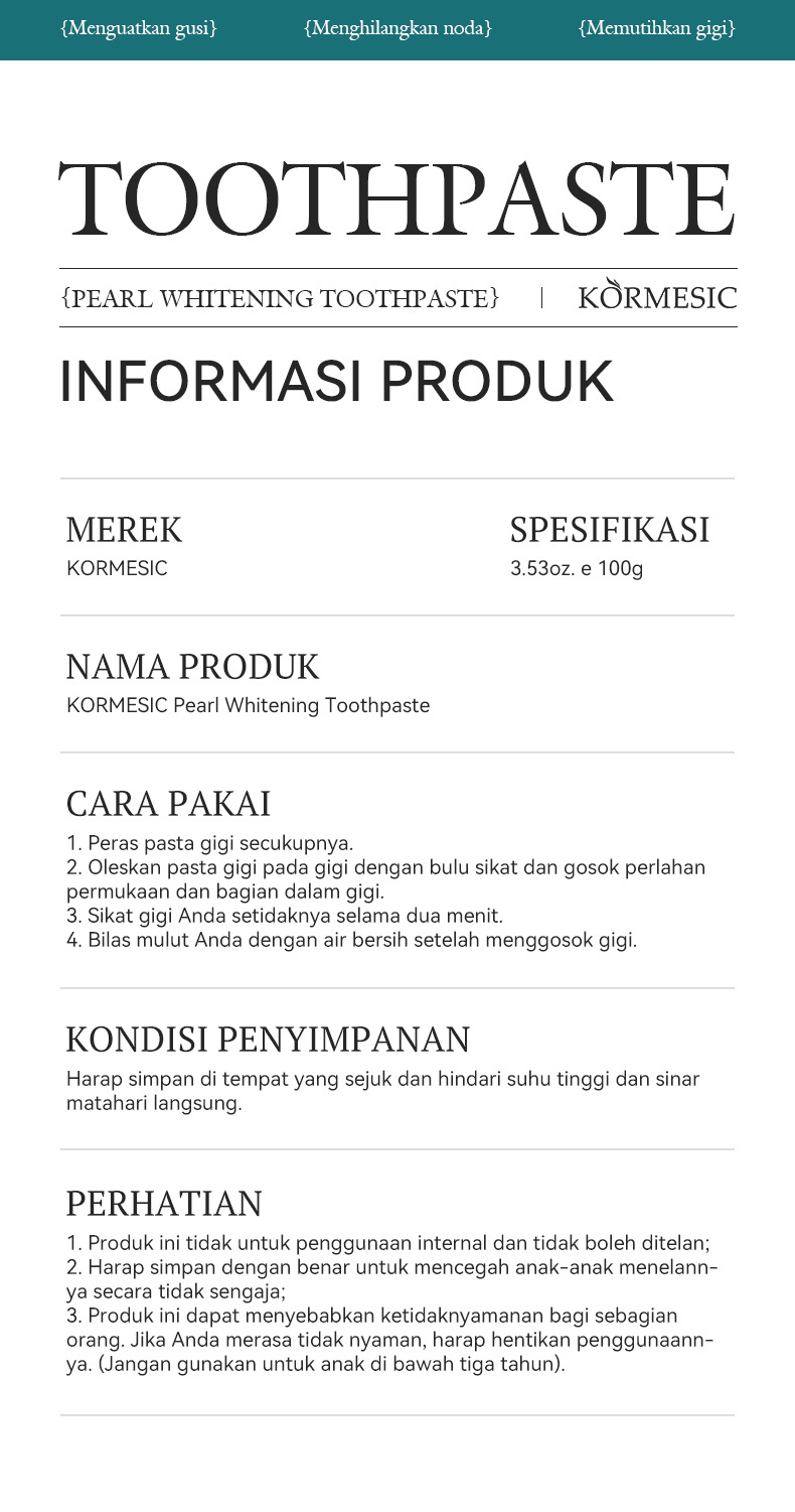kormesic pearl whitening toothpaste 100g [only for foreign trade cross-border sales, domestic sales are prohibited, purchase is default