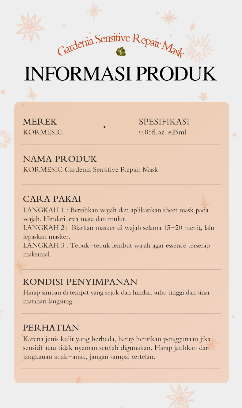 kormesic gardenia mask 25ml [only for cross-border sales of foreign trade, domestic sales are prohibited, and purchase is free by default