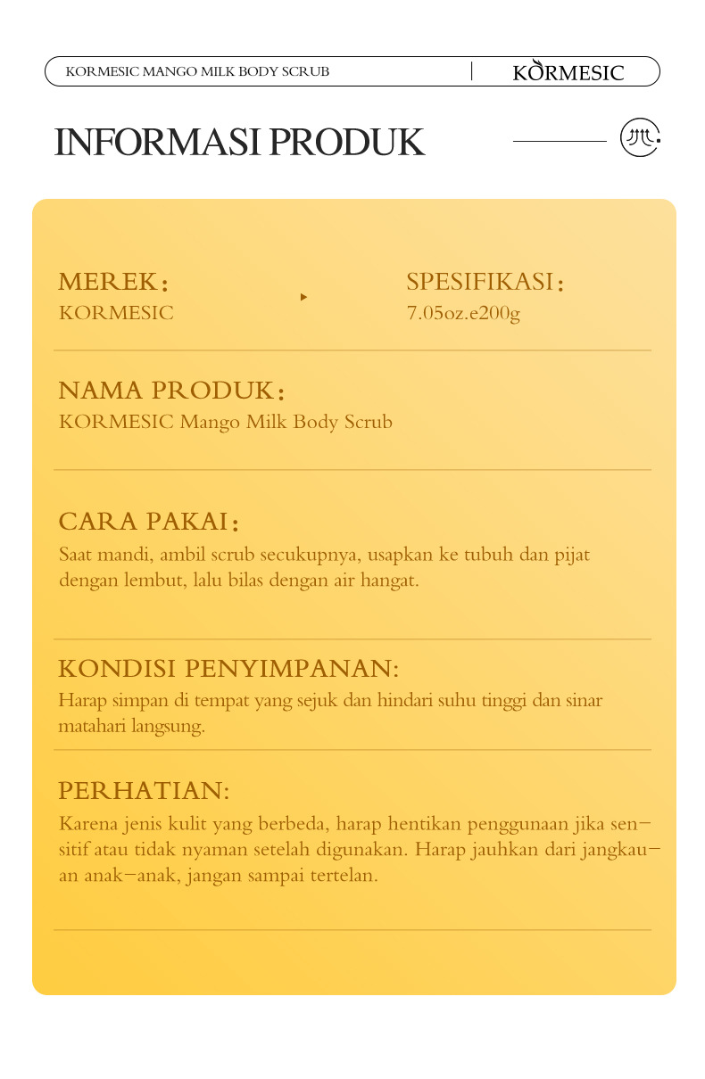 bpom indonesia kormesic mango milk body scrub cream body scrub factory wholesale cross-border foreign trade
