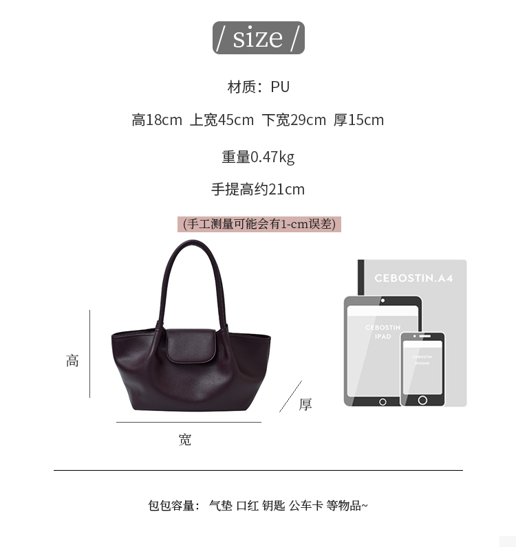 cross-border simple and lightweight large capacity portable tote bag autumn fashion all-matching commuter shoulder bag 中文版