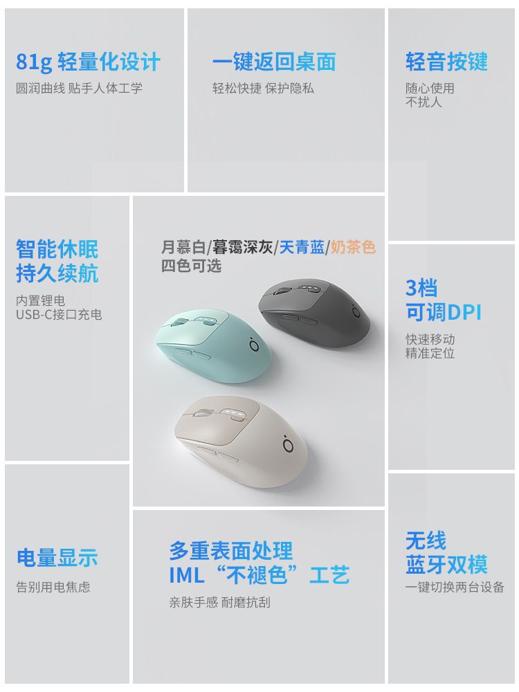 moon mu gray [2.4g + bluetooth wireless version] -- mute button -- long-lasting endurance-power display-universal for multiple devices