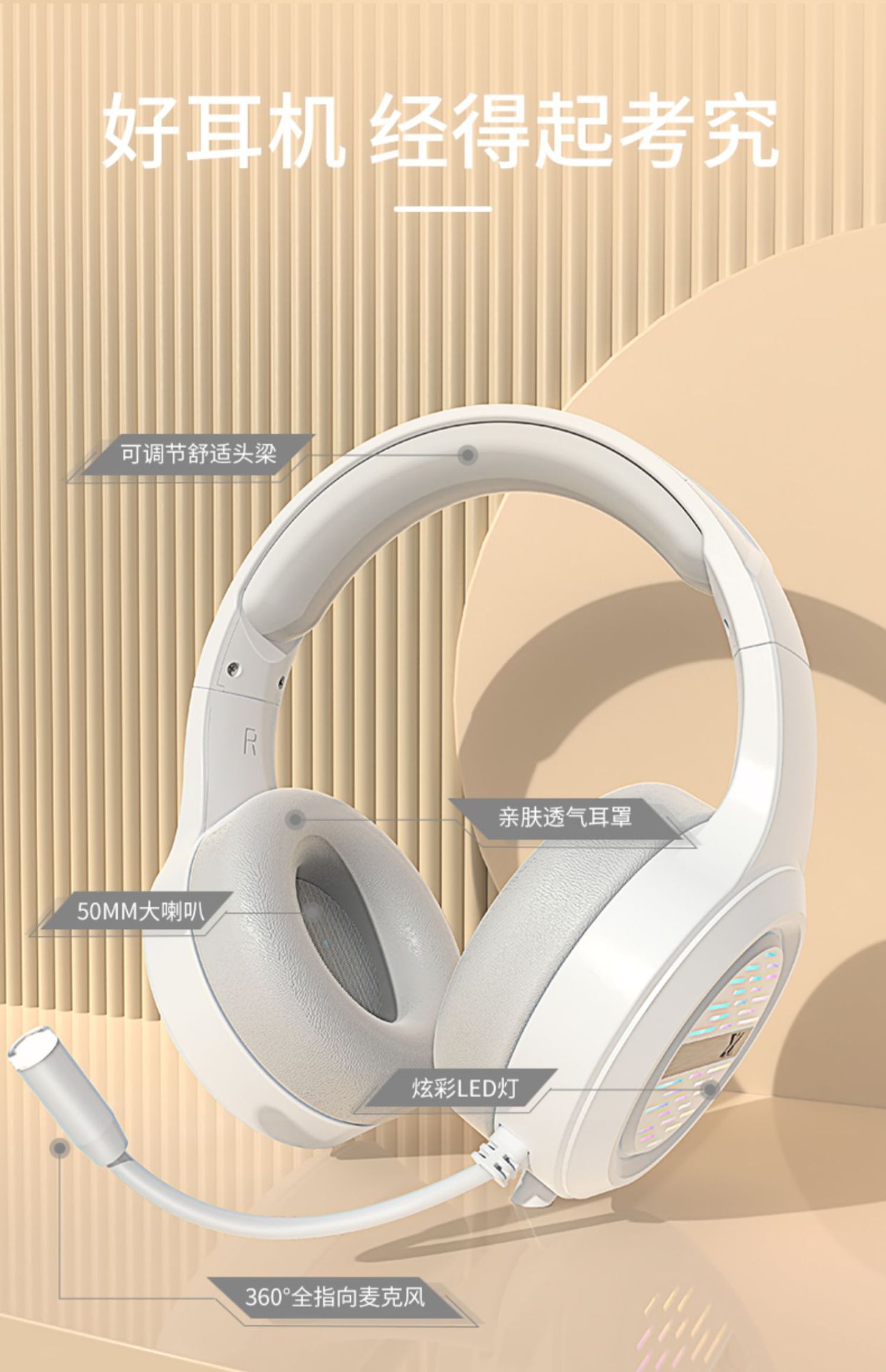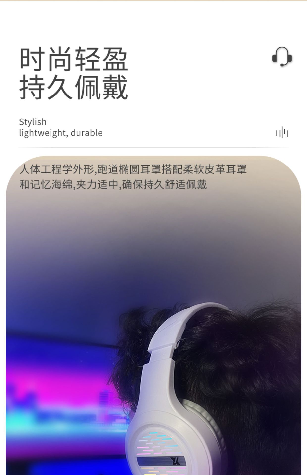 white double-hole luminous headset