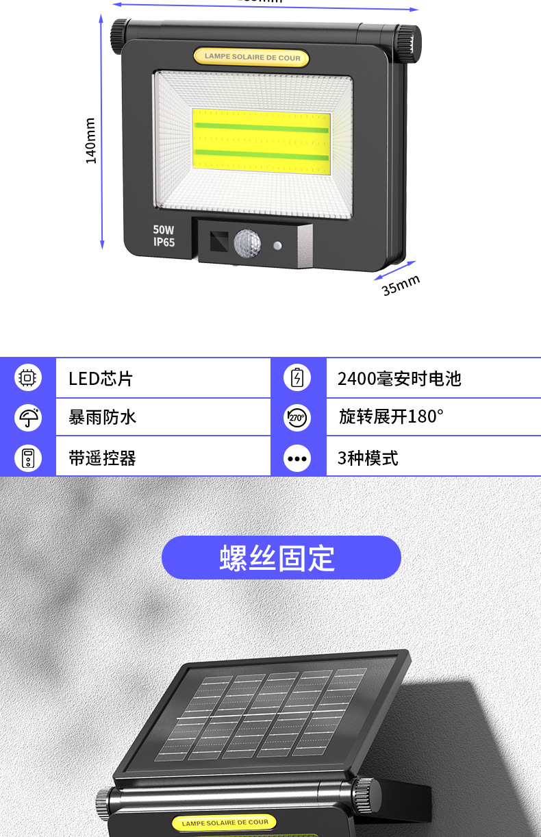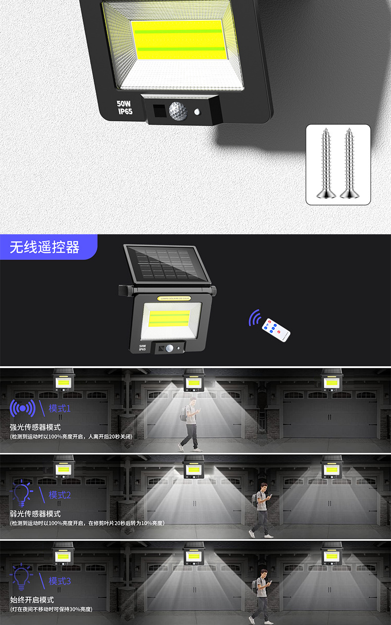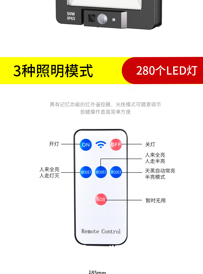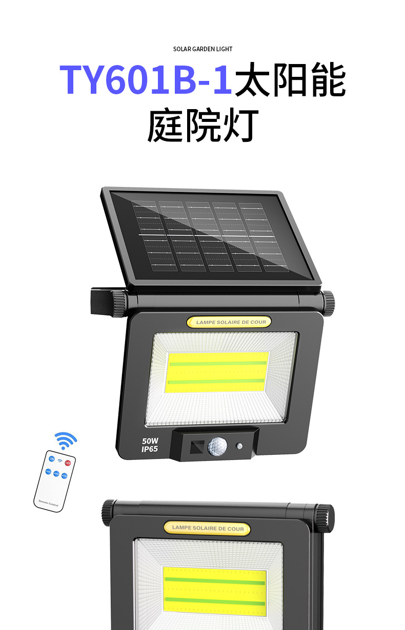 ty601b glass solar panel (cob +1800mah + remote control wiring)