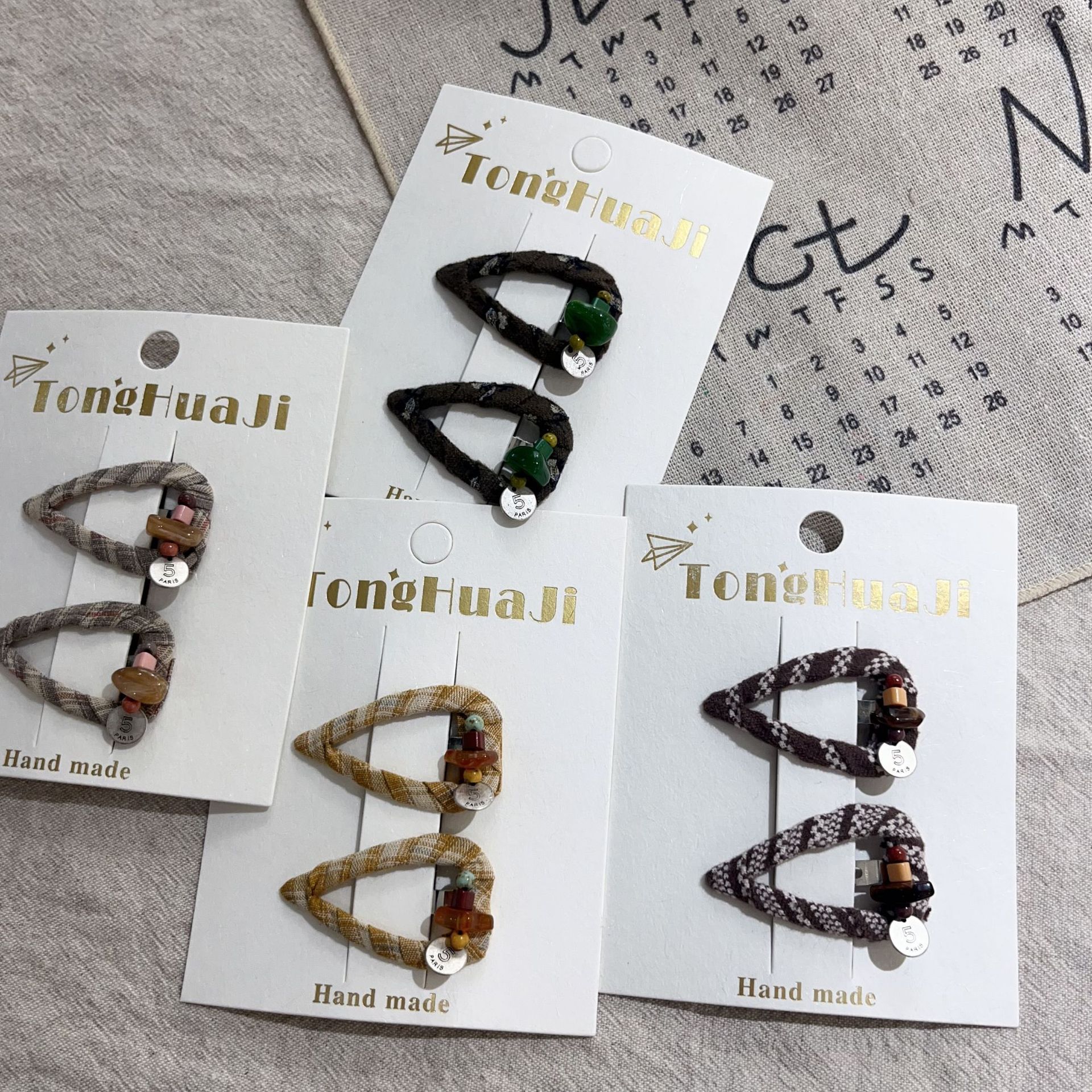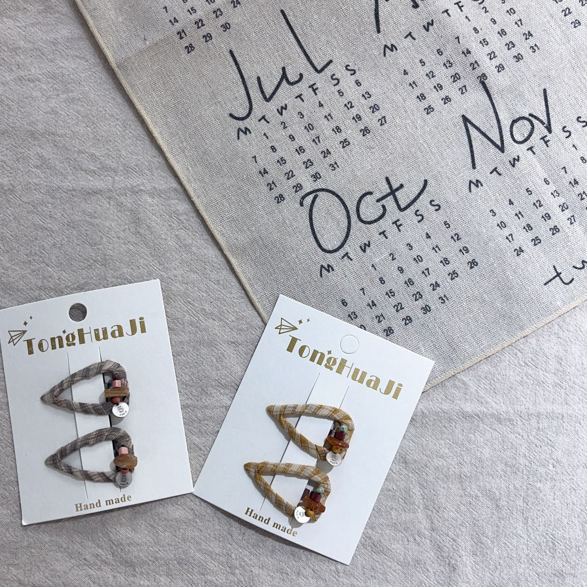 fairy tale new autumn and winter beaded hollow triangle fabric bb clip high-grade versatile bang clip cropped hair clip hair accessories 中文版