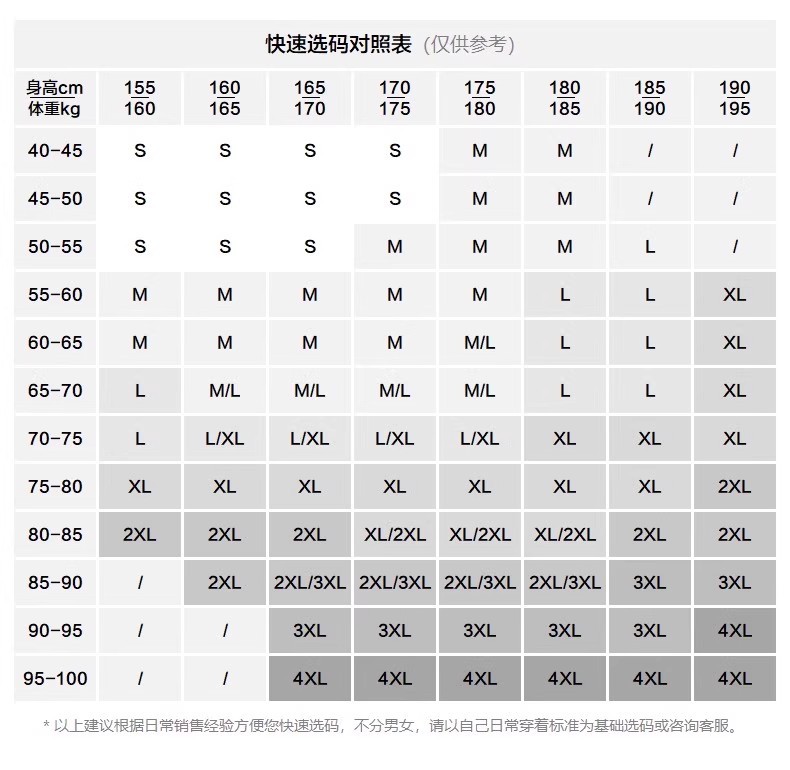 | 尺码 | M,L,XL,2XL,3XL,4XL | 适合季节 | 冬季 |