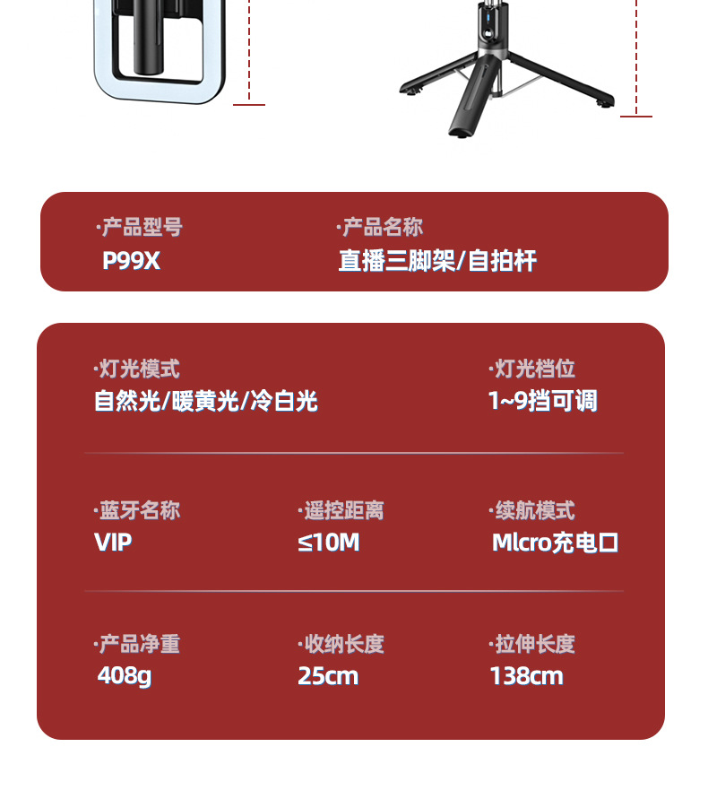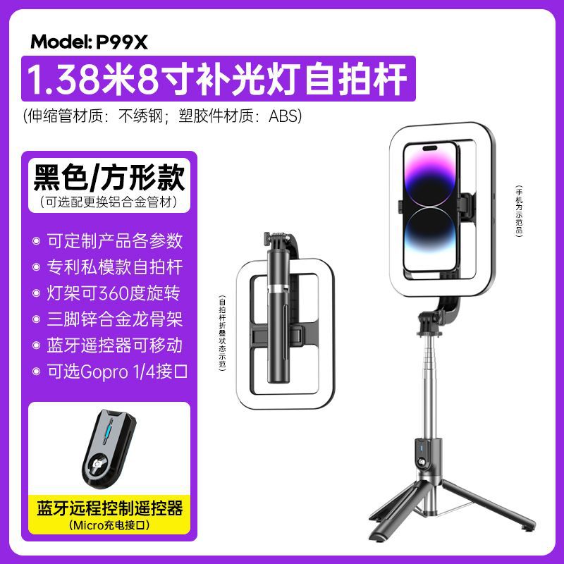 p99x live streaming fill light tri-color dimmable beauty lamp mobile phone taking pictures and selfies rod tripod live streaming fill light 中文版