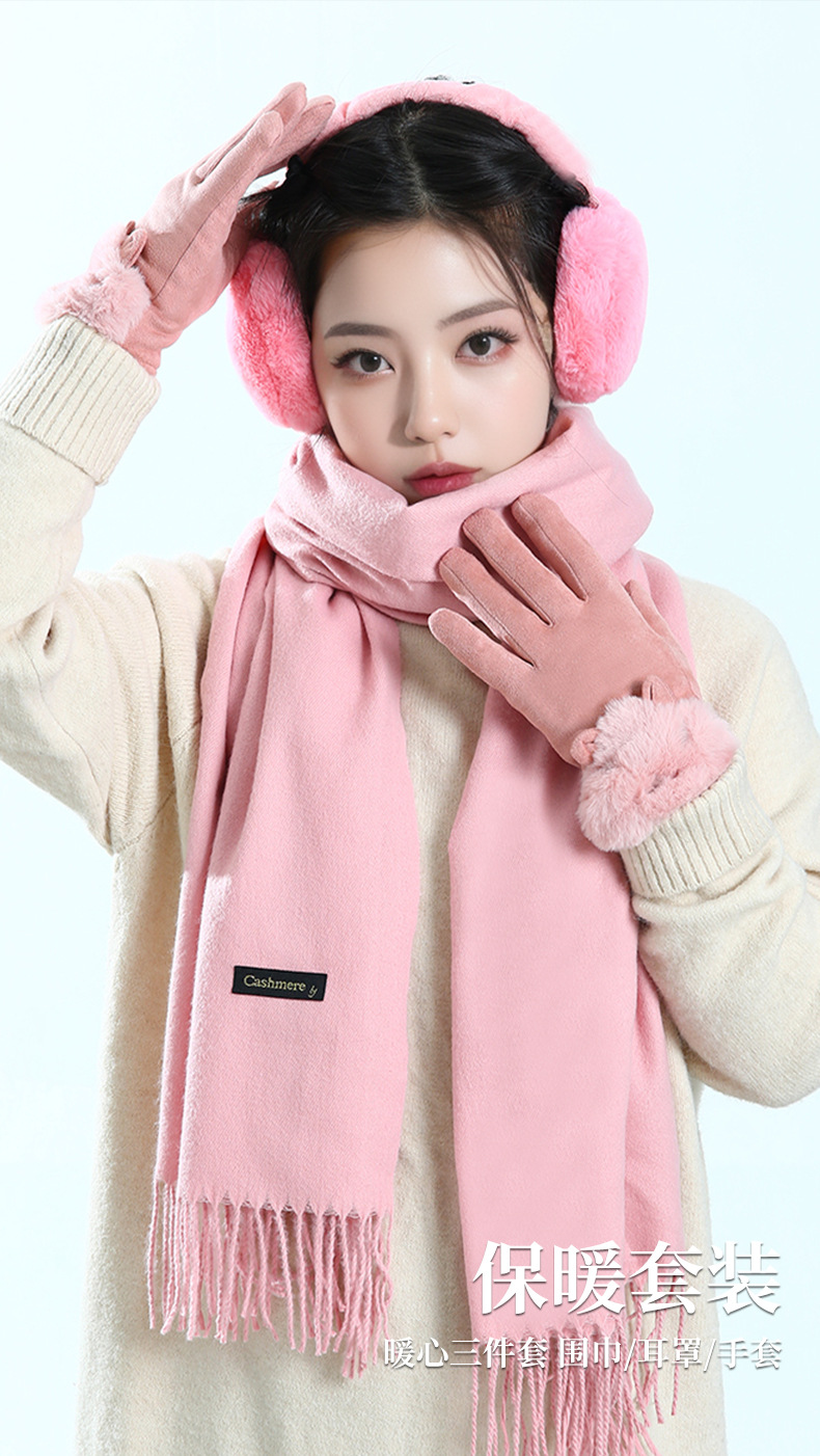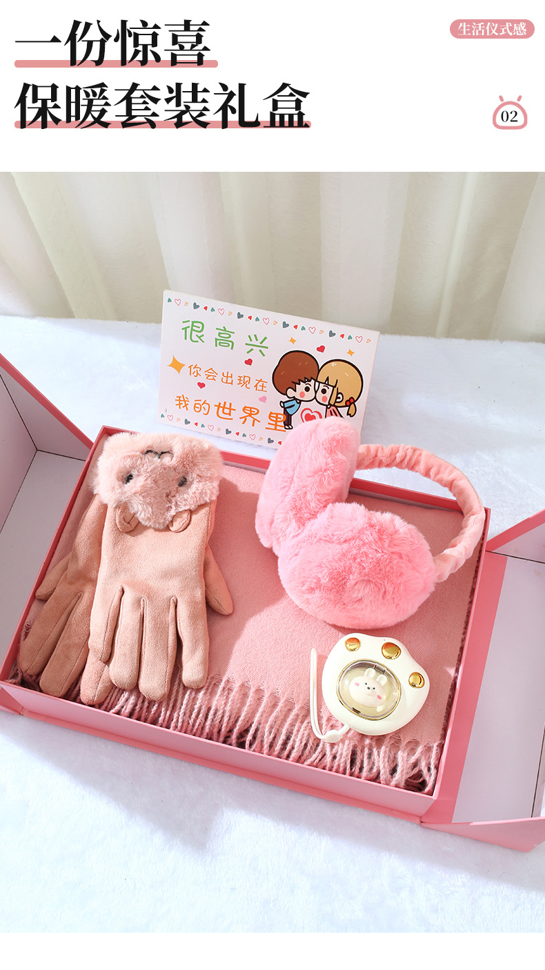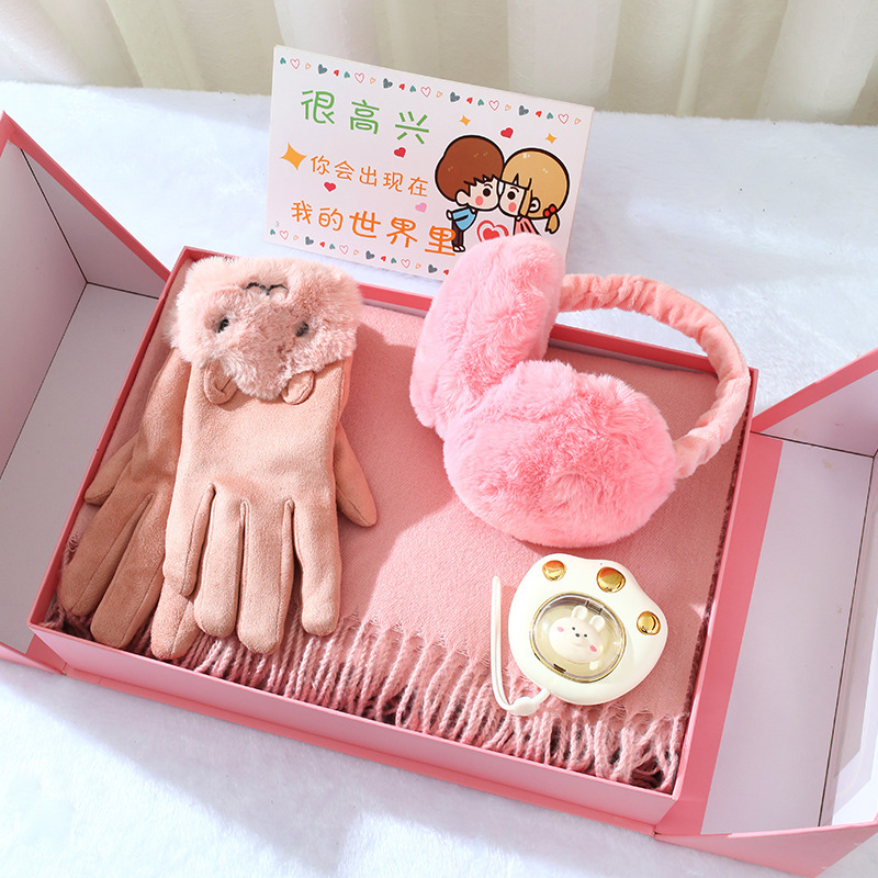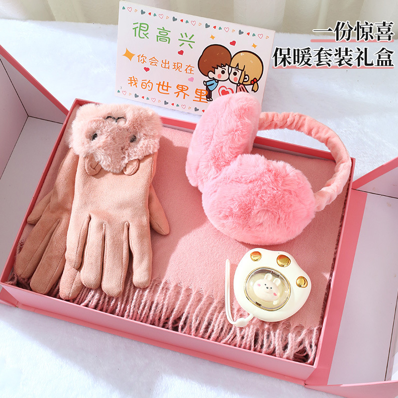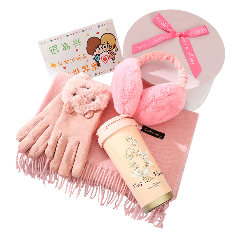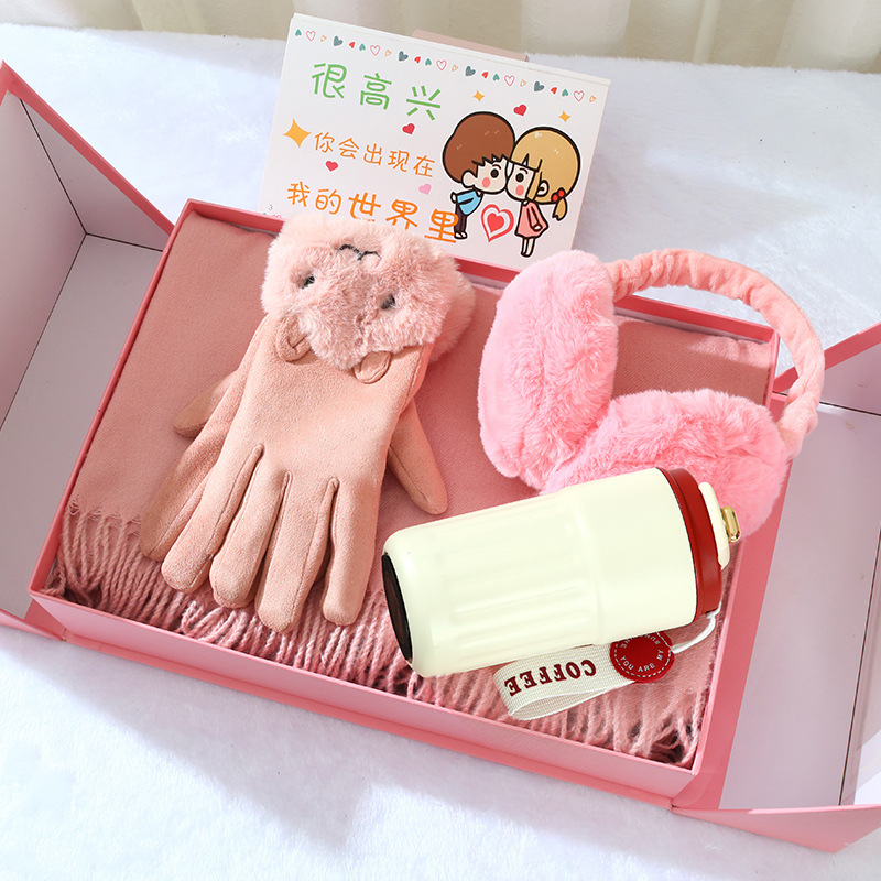 winter double open gift box + scarf gloves + ear warmer + pink linglan cup
