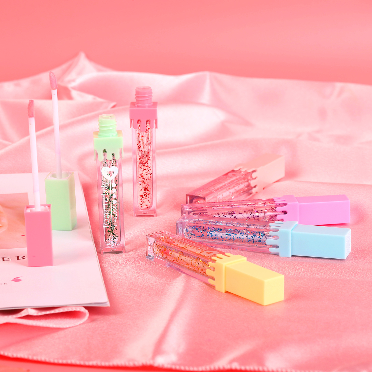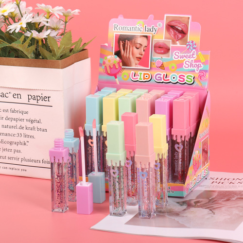 foreign trade cross-border new sequins lip lacquer mirror water light glass color changing thin and glittering lip gloss no stain on cup non-fading 中文版