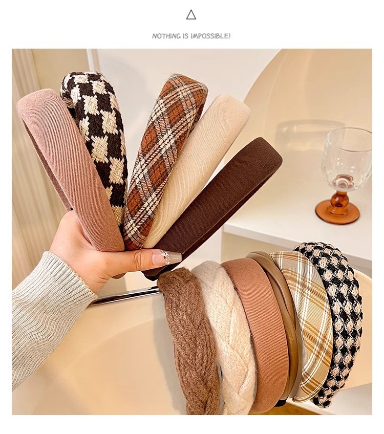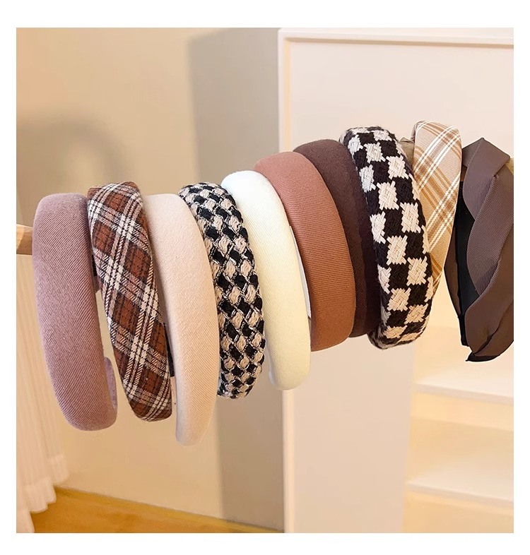 7# pink wide brim plaid headband