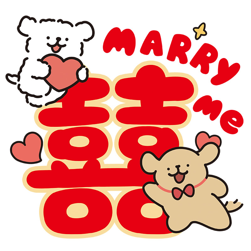 line puppy chinese character xi electrostatic sticker [happy wedding] 2