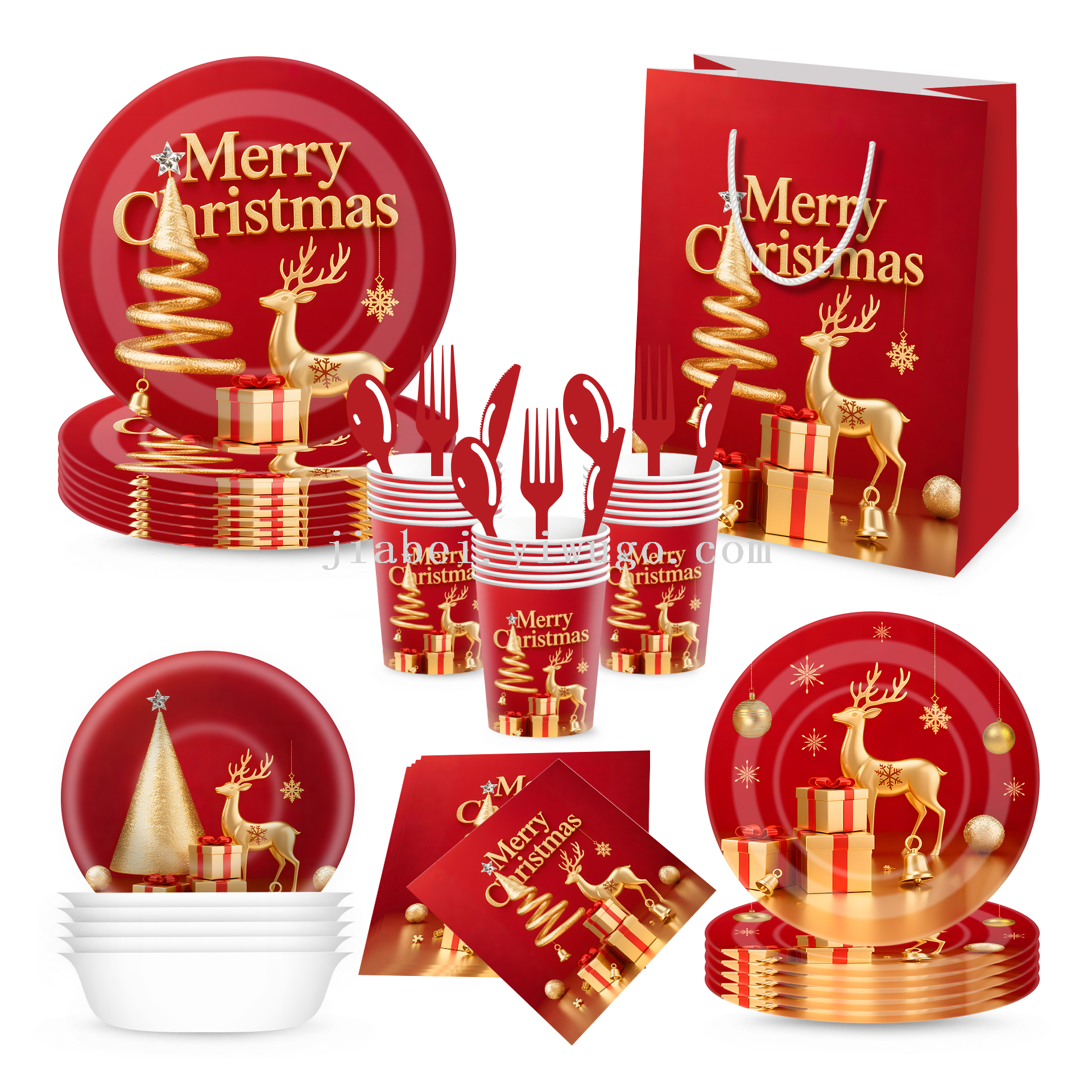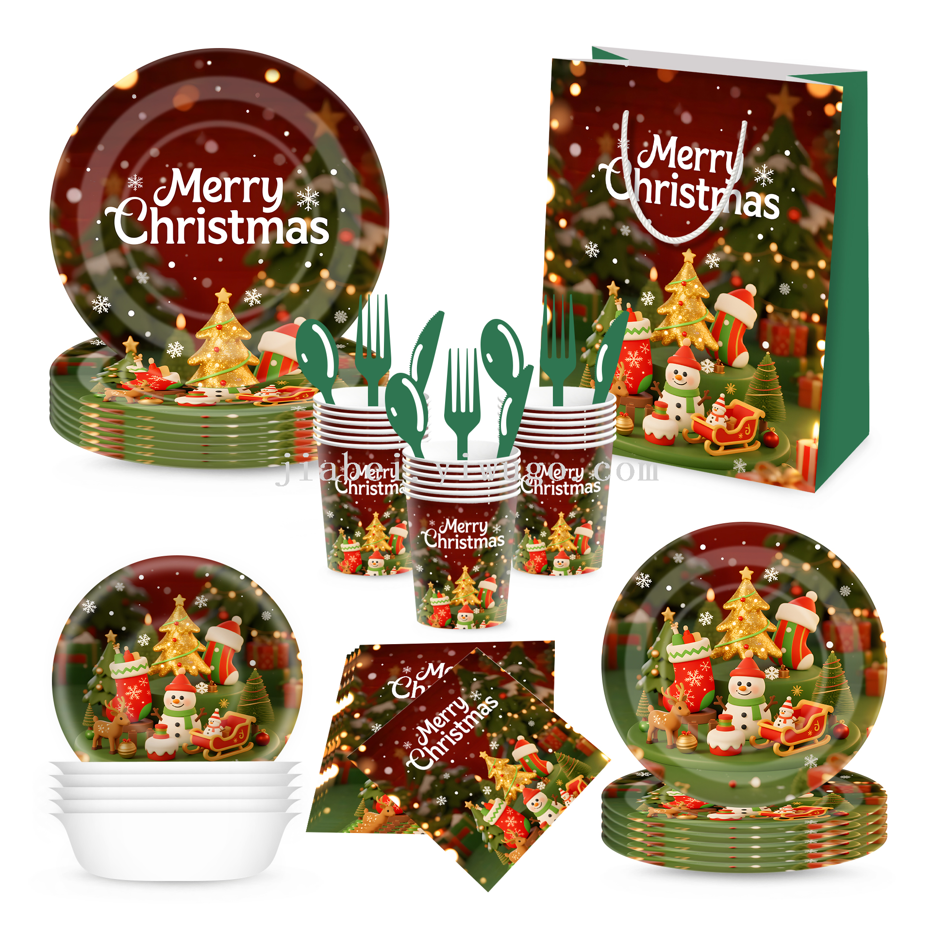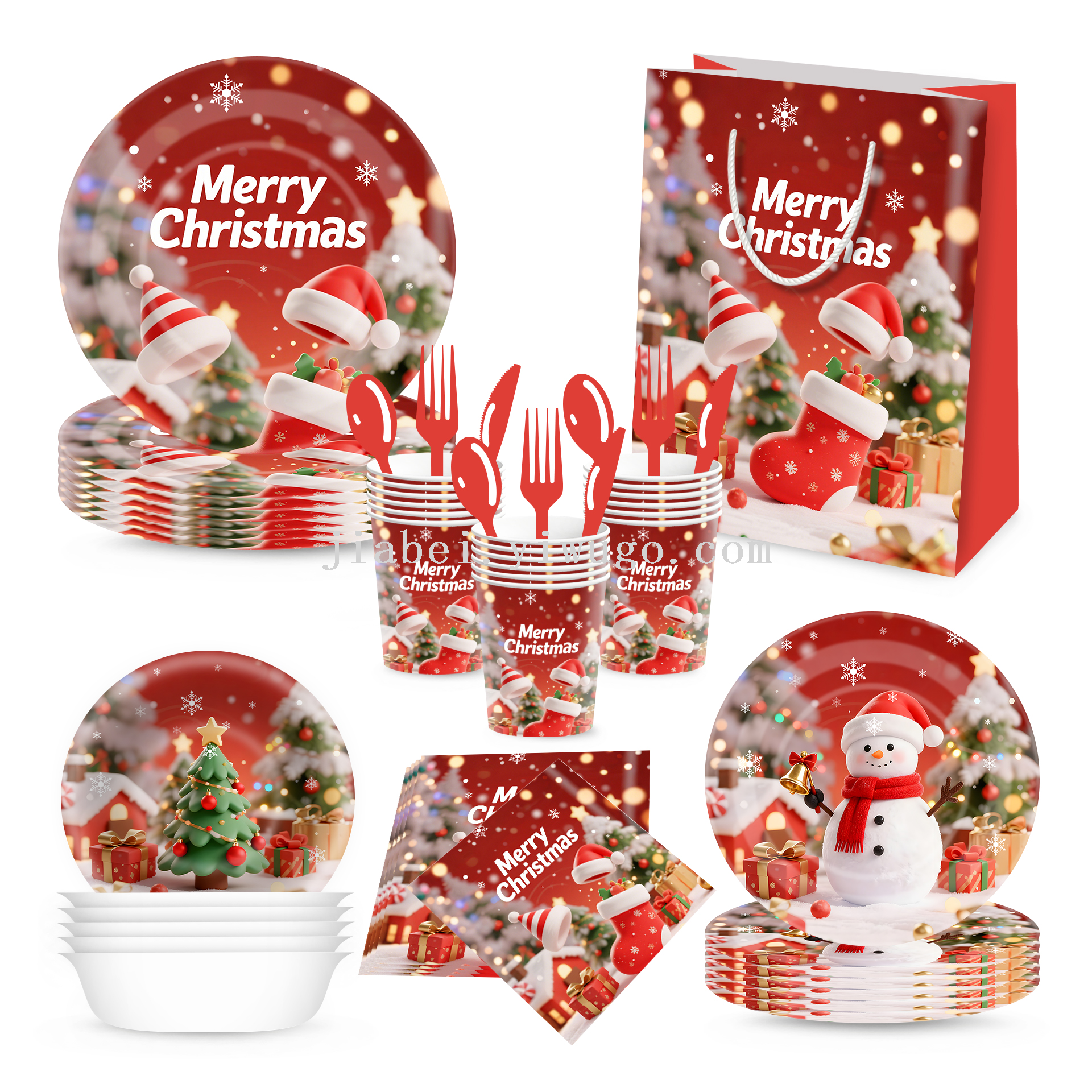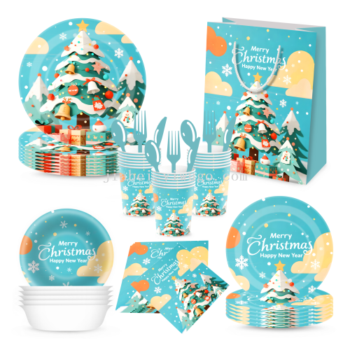 new christmas decoration paper pallet paper cup tissue disposable holiday party supplies decoration tableware set gift bag 中文版