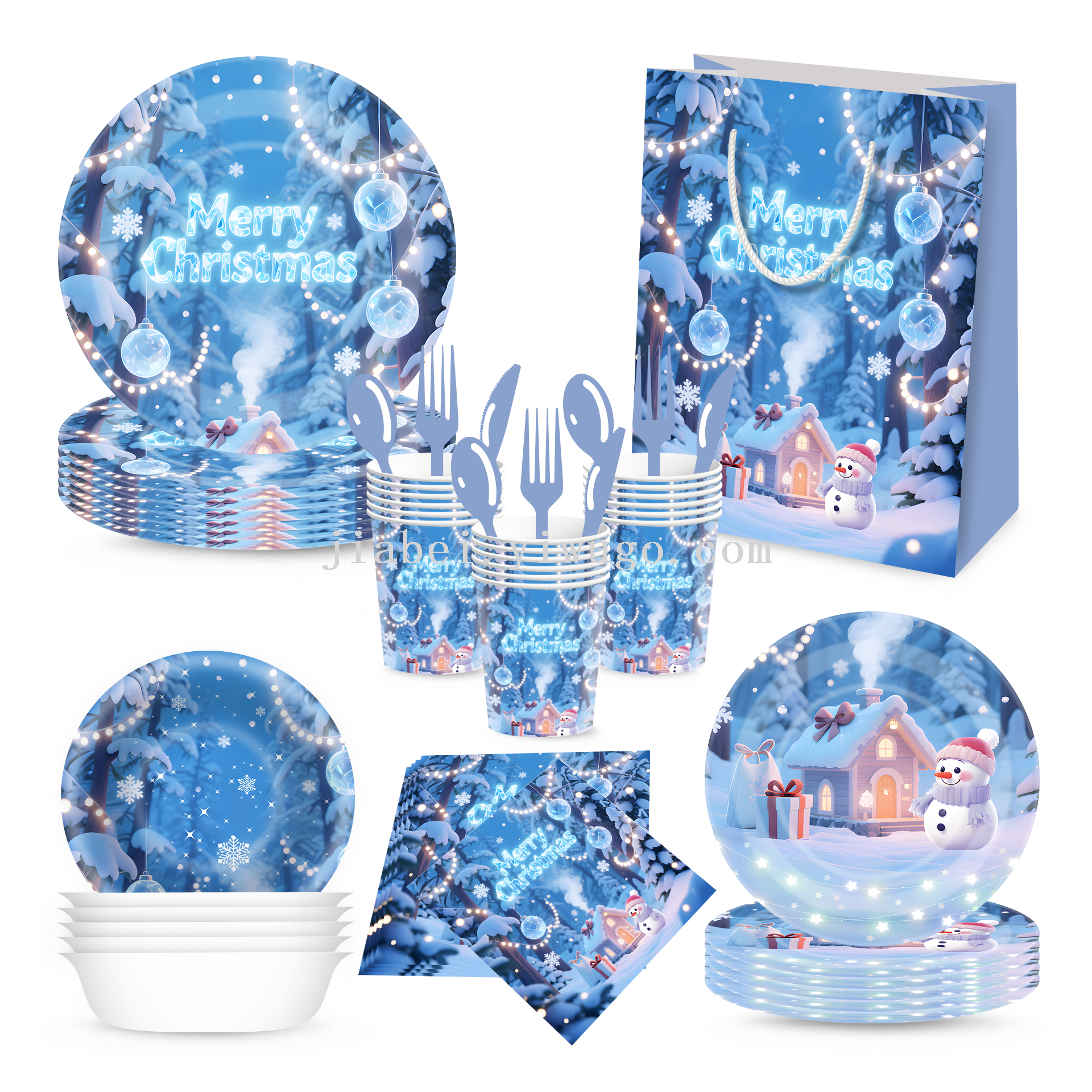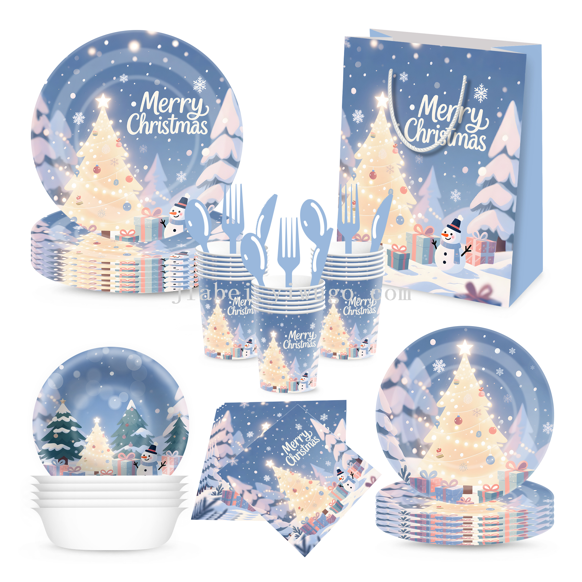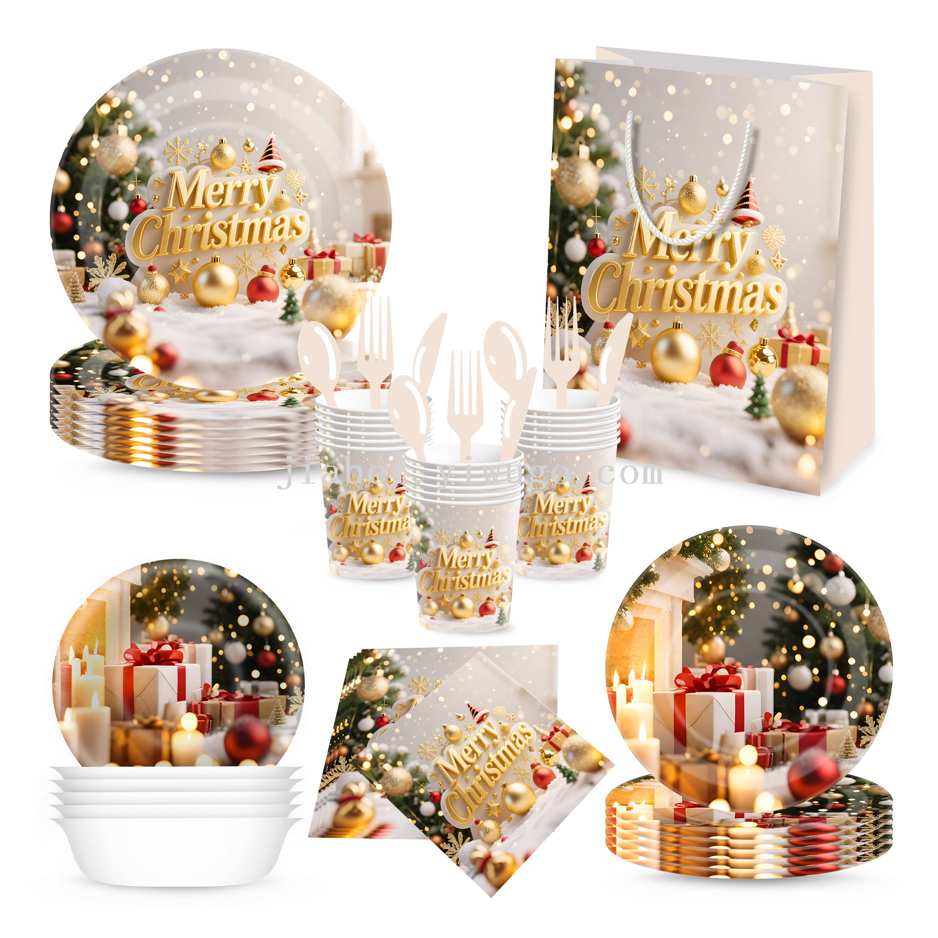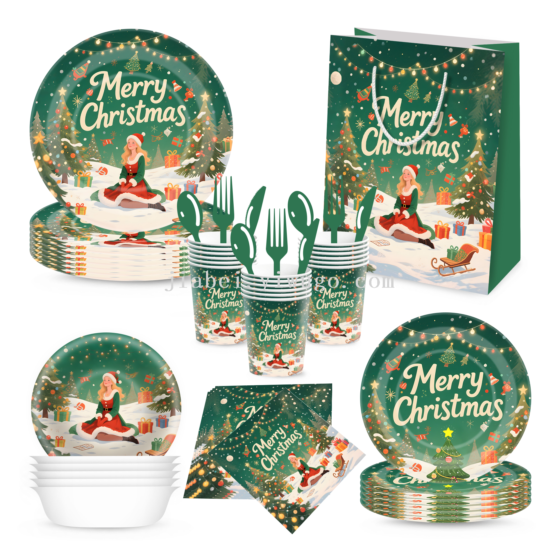new christmas decoration paper pallet paper cup tissue disposable holiday party supplies decoration tableware set gift bag 中文版