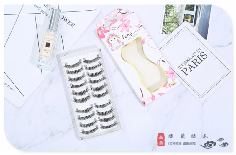 Product Name: Faux Mink Lash Extensions, Natural Thickness and Length, Model No. 719, Color Box Packaging, Realistic Bare-face Makeup, Natural and Sharp Pointed