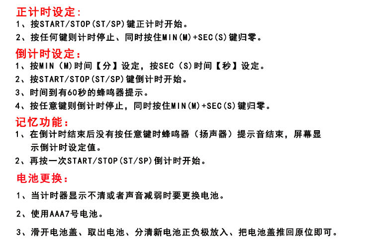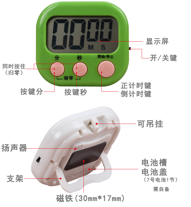 1. Product Features: 100-minute electronic positive and negative countdown timer with memory function