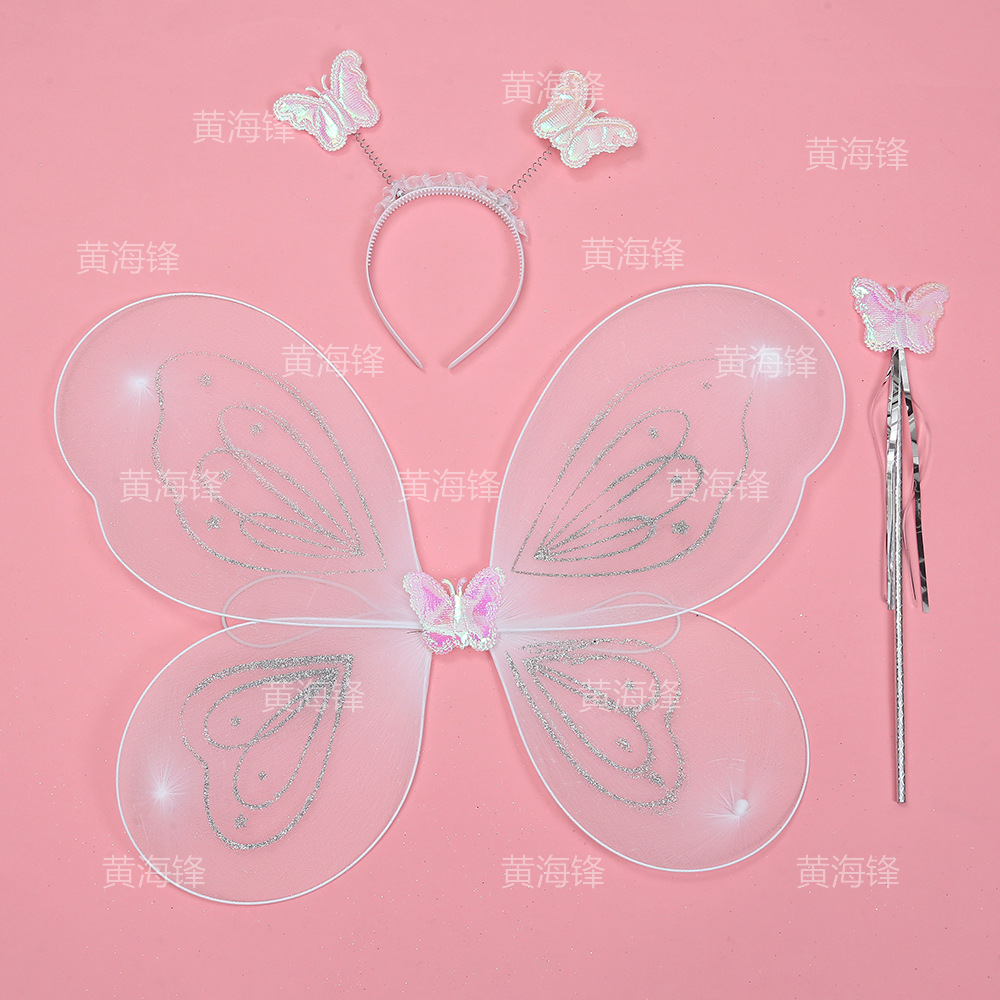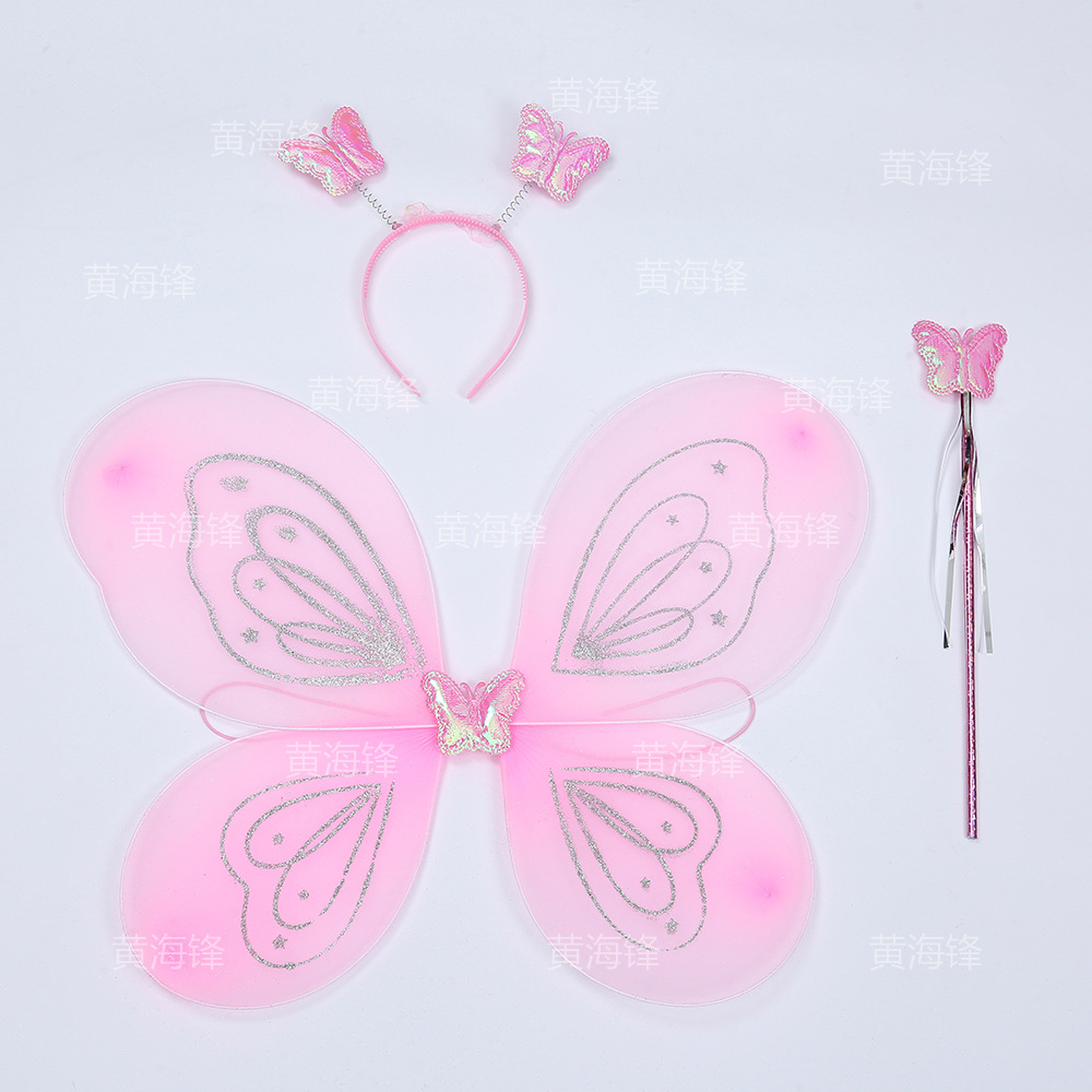 silver pink printing fairy wings cross-border wholesale butterfly wings three-piece children's wings back accessories headband magical stick 中文版