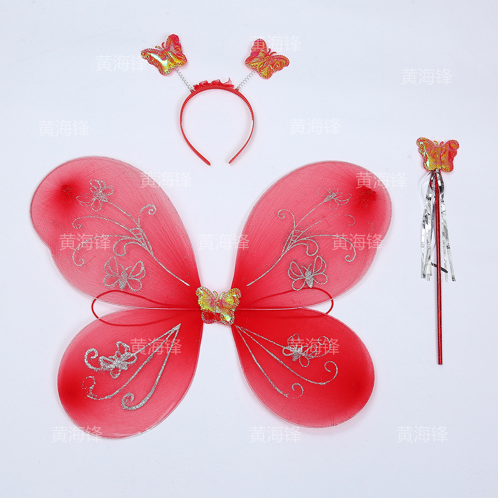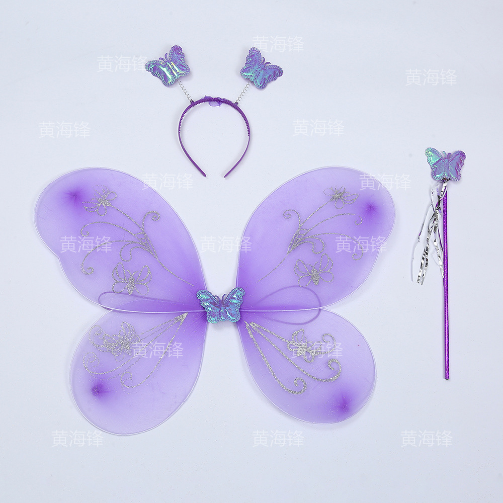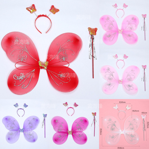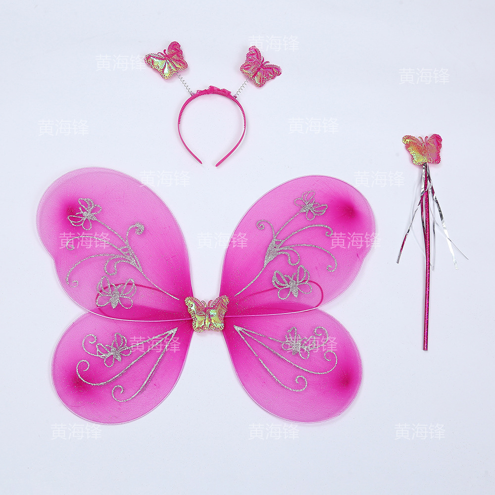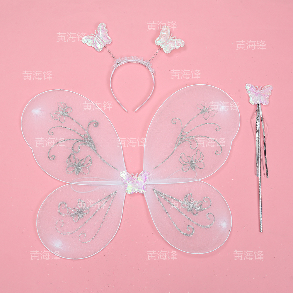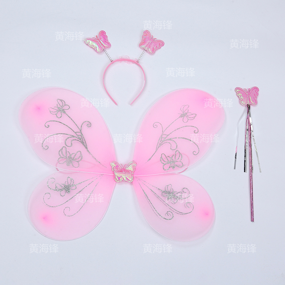 cross-border wholesale butterfly wings three-piece children's wings back accessories headband magical stick silver pink butterfly printed wings 中文版