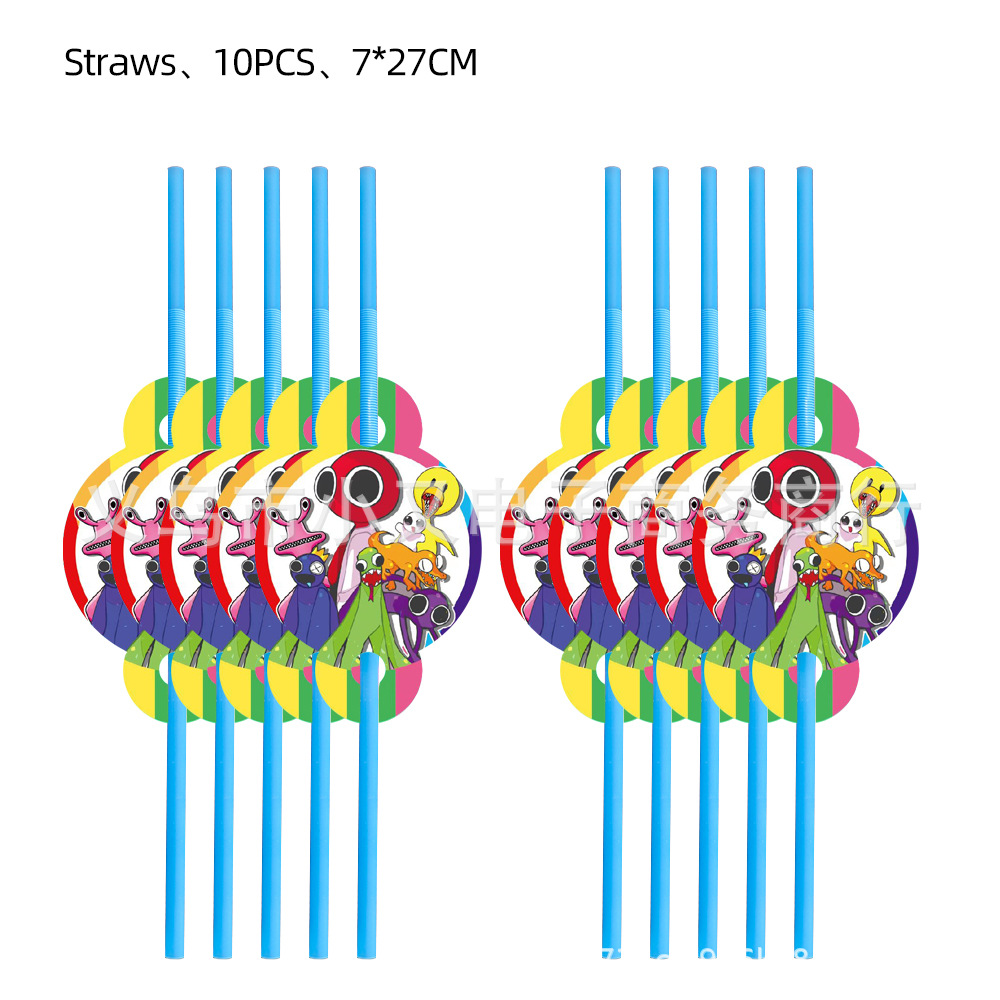 【8件套】:7寸盘10P+吸管10P+叉10P+三角旗10P+桌布1P+纸杯10P+纸巾20P+大插排1P