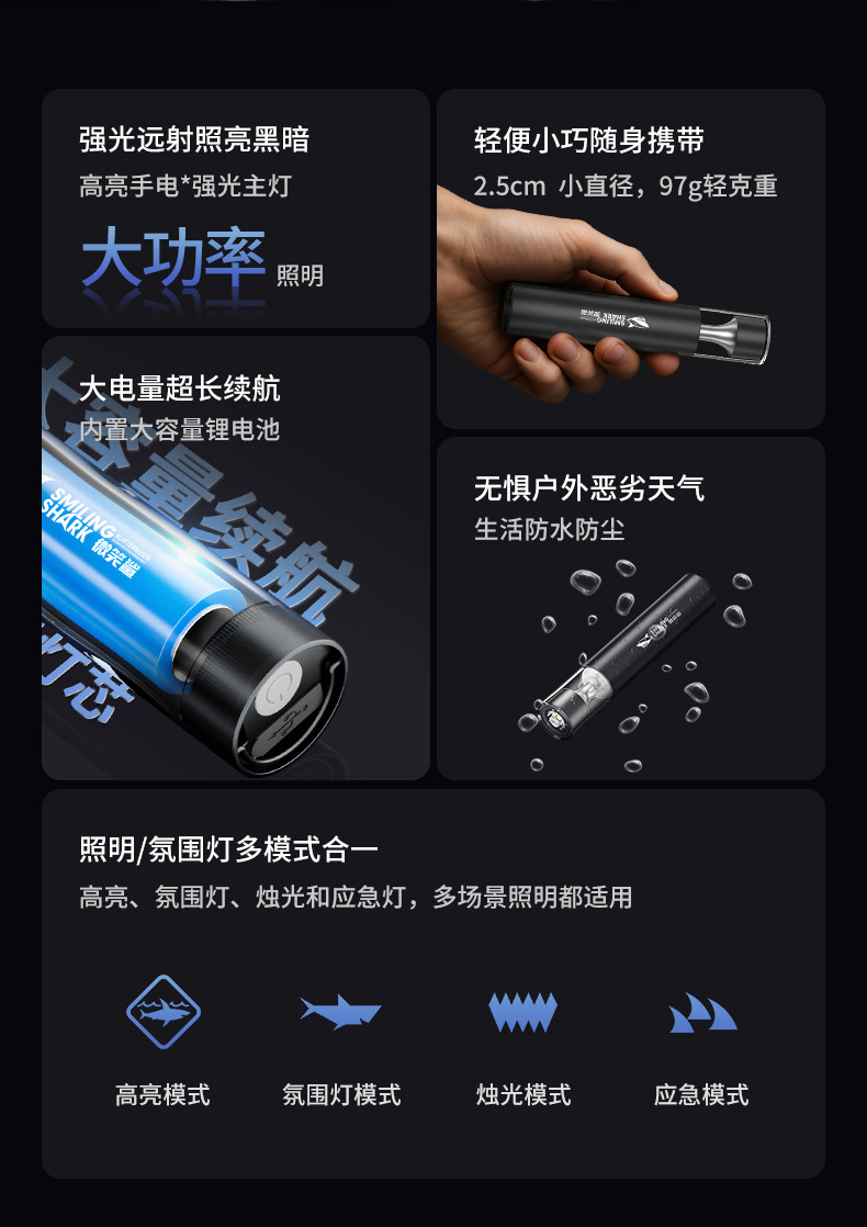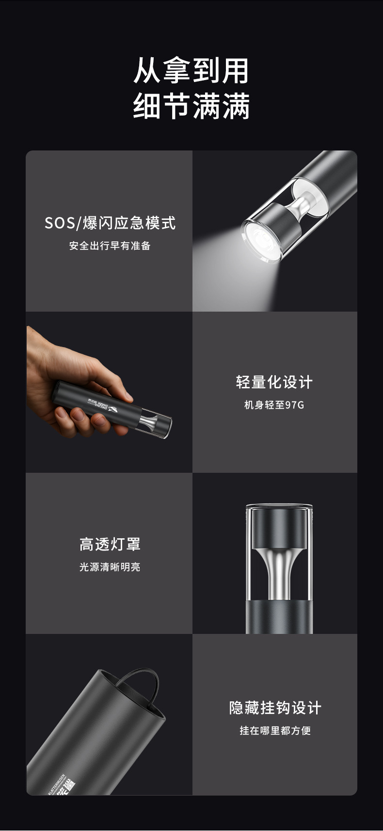 617a fixed focus small flashlight-black [built-in battery 1200mah]]
