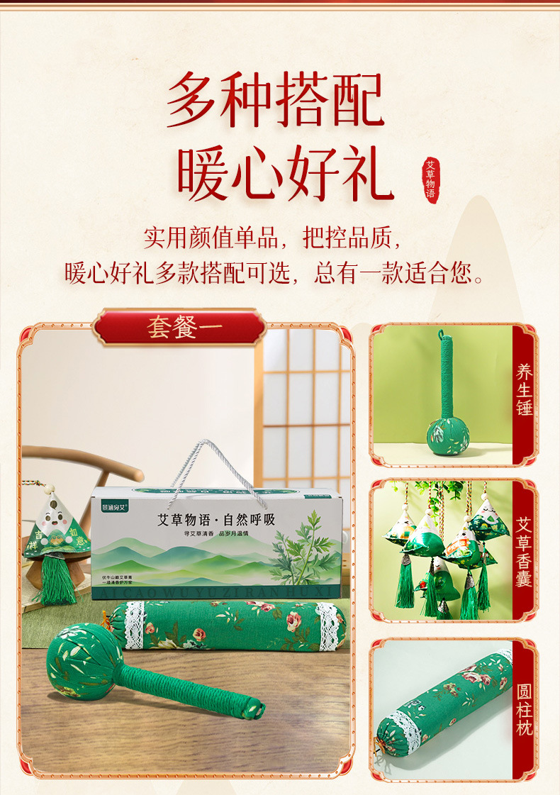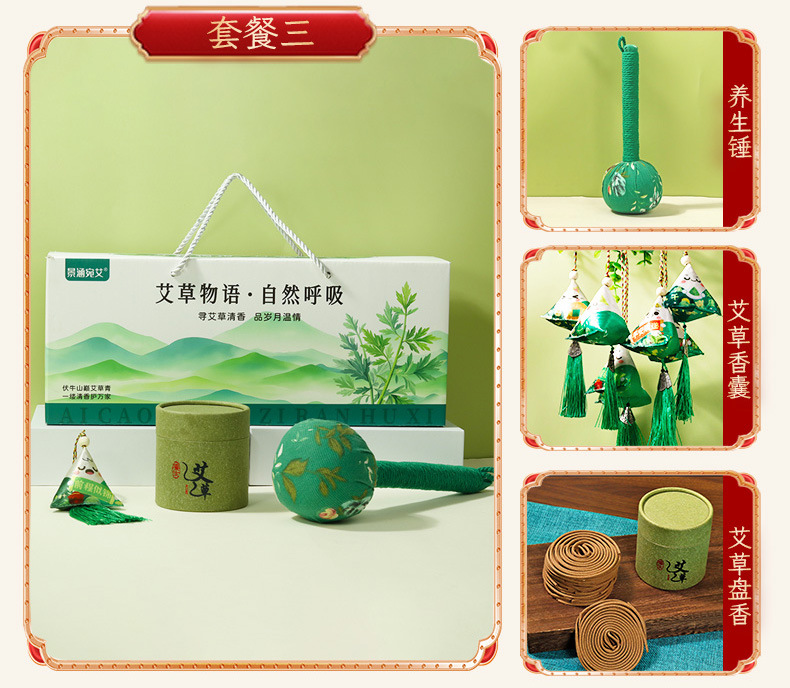 argy wormwood story gift set (health hammer + argy wormwood incense coil + argy wormwood perfume bag)