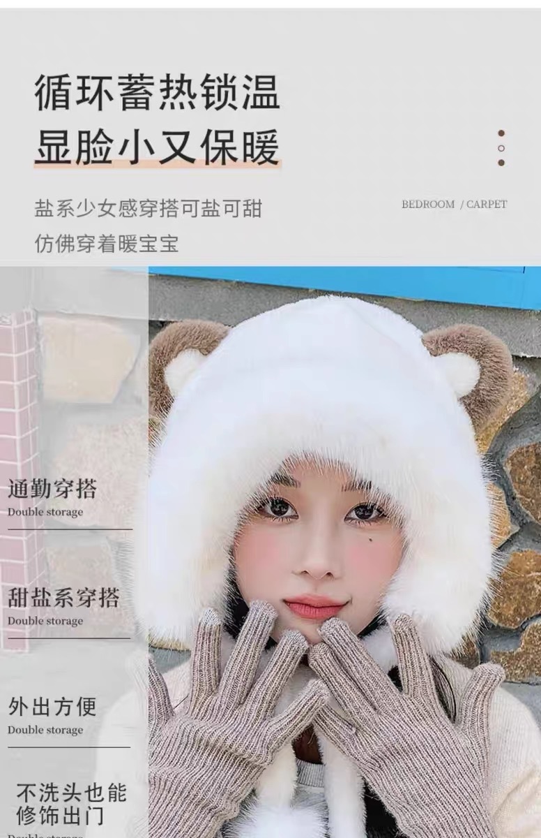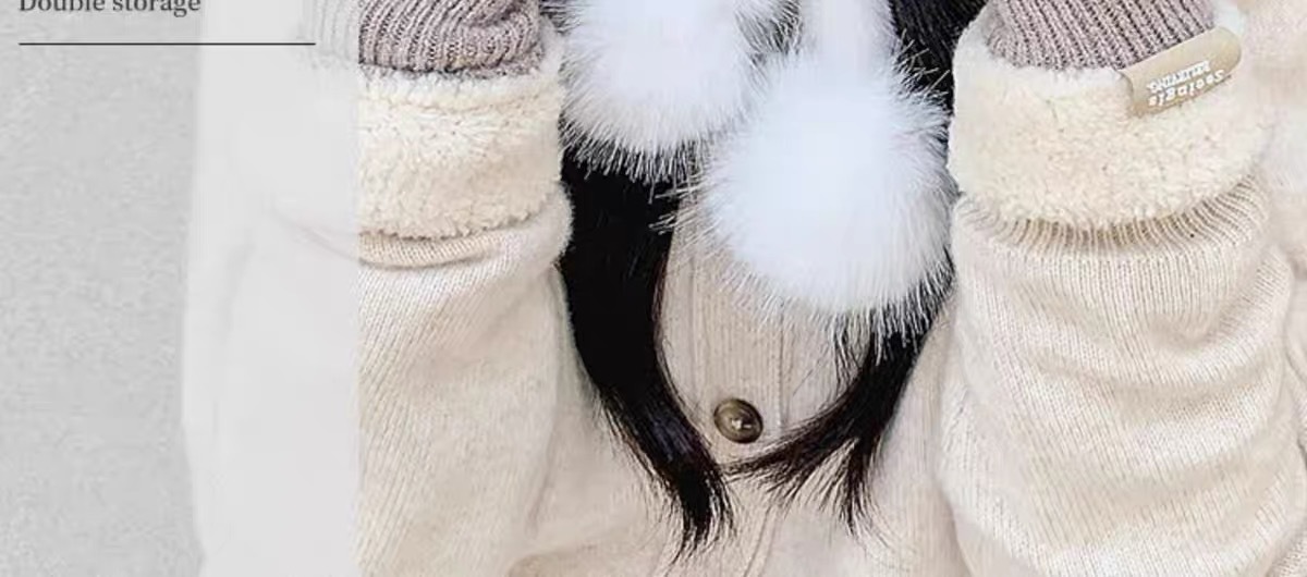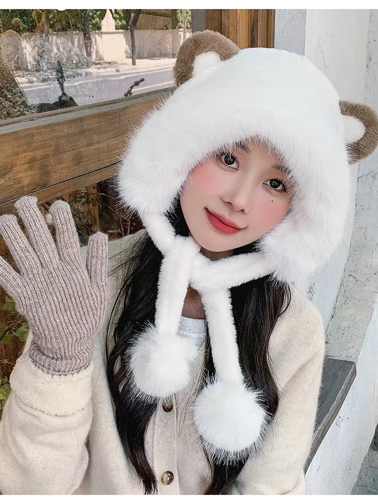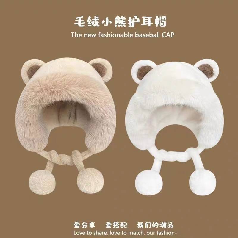 long shoelace fluffy ball cap-beige