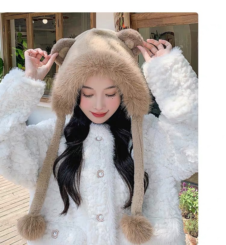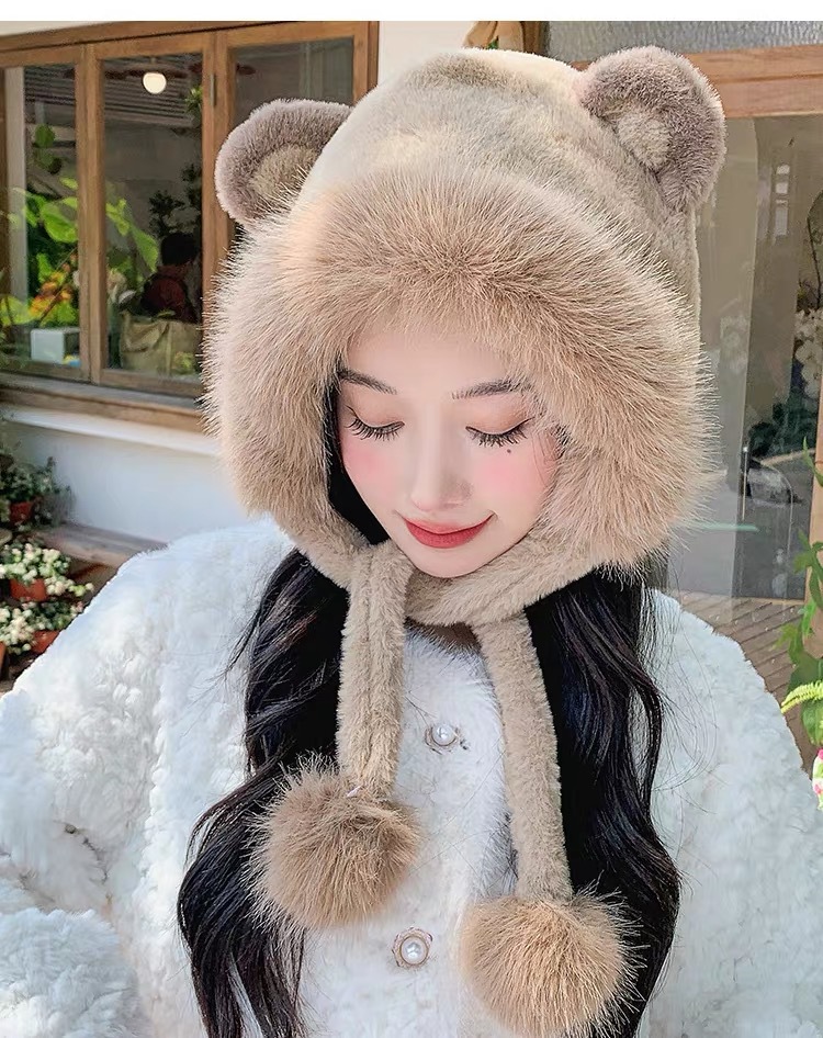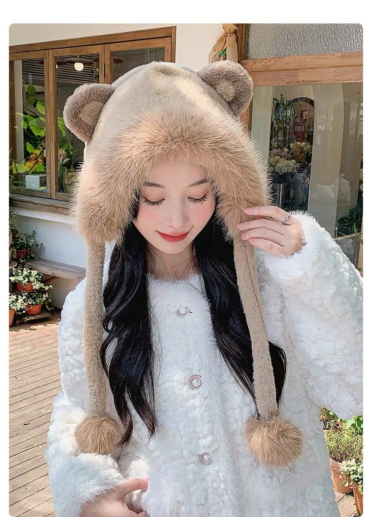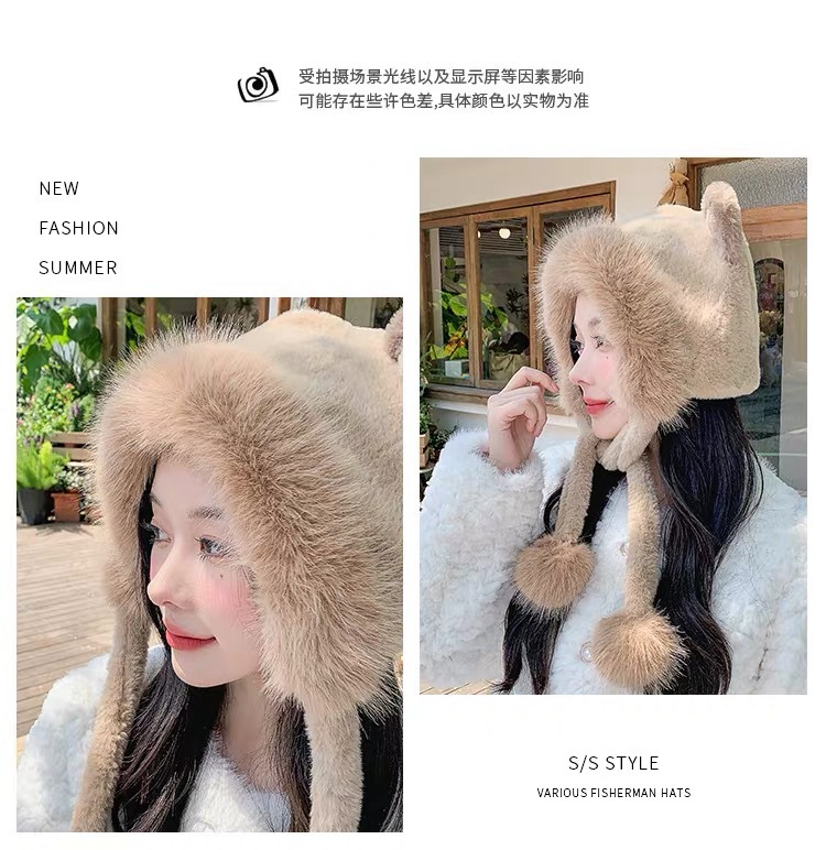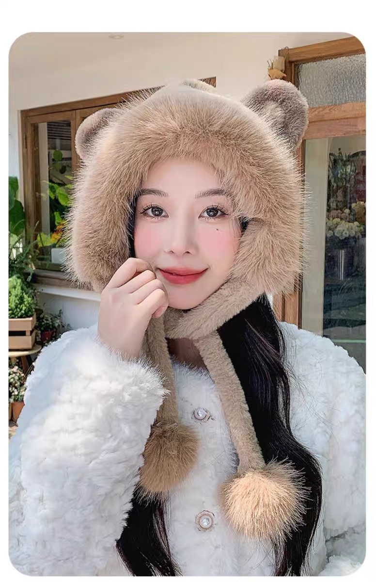 long shoelace fluffy ball cap-coffee color