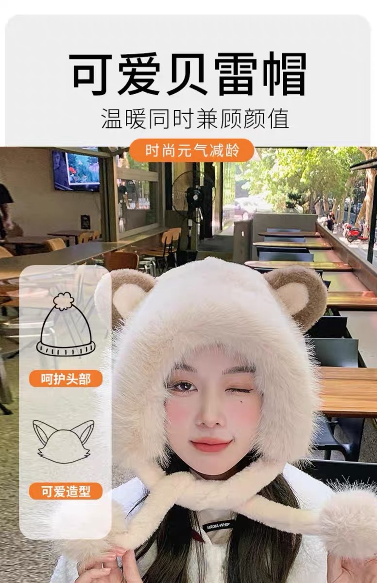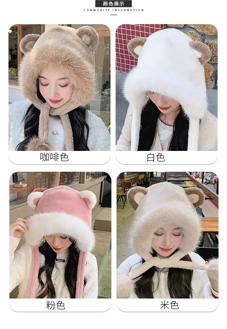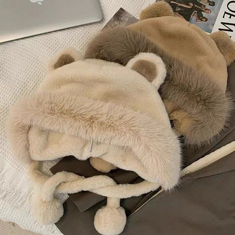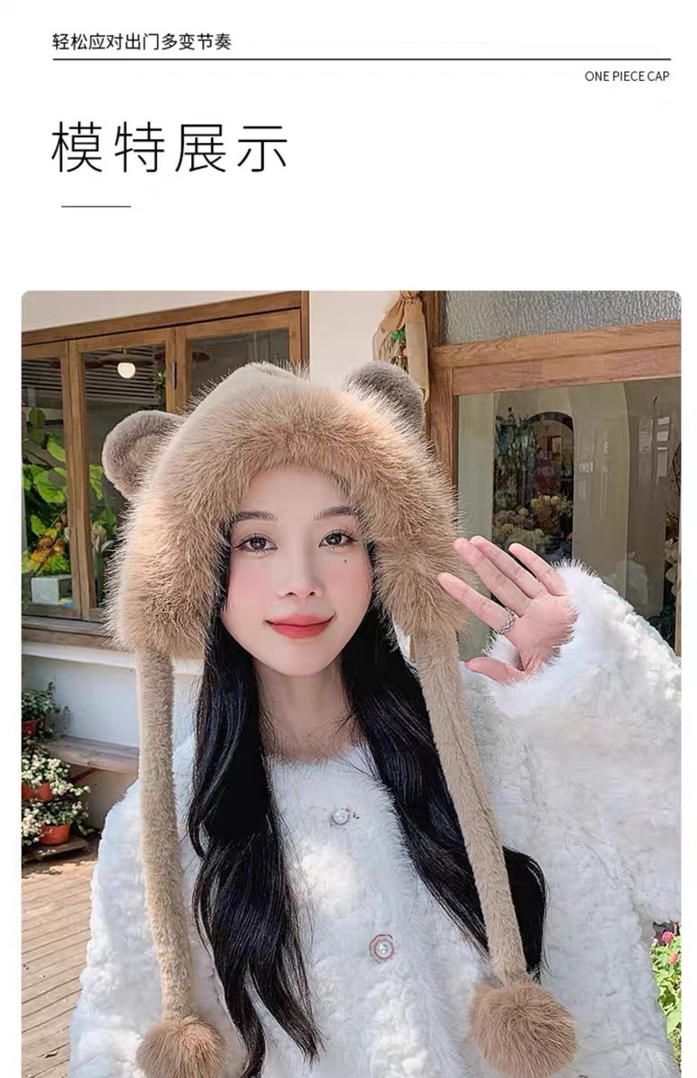 long shoelace fluffy ball cap-coffee color