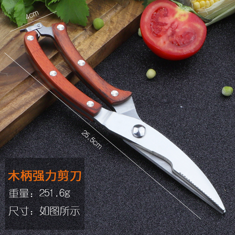 wooden handle kitchen scissors (automatic rebound)
