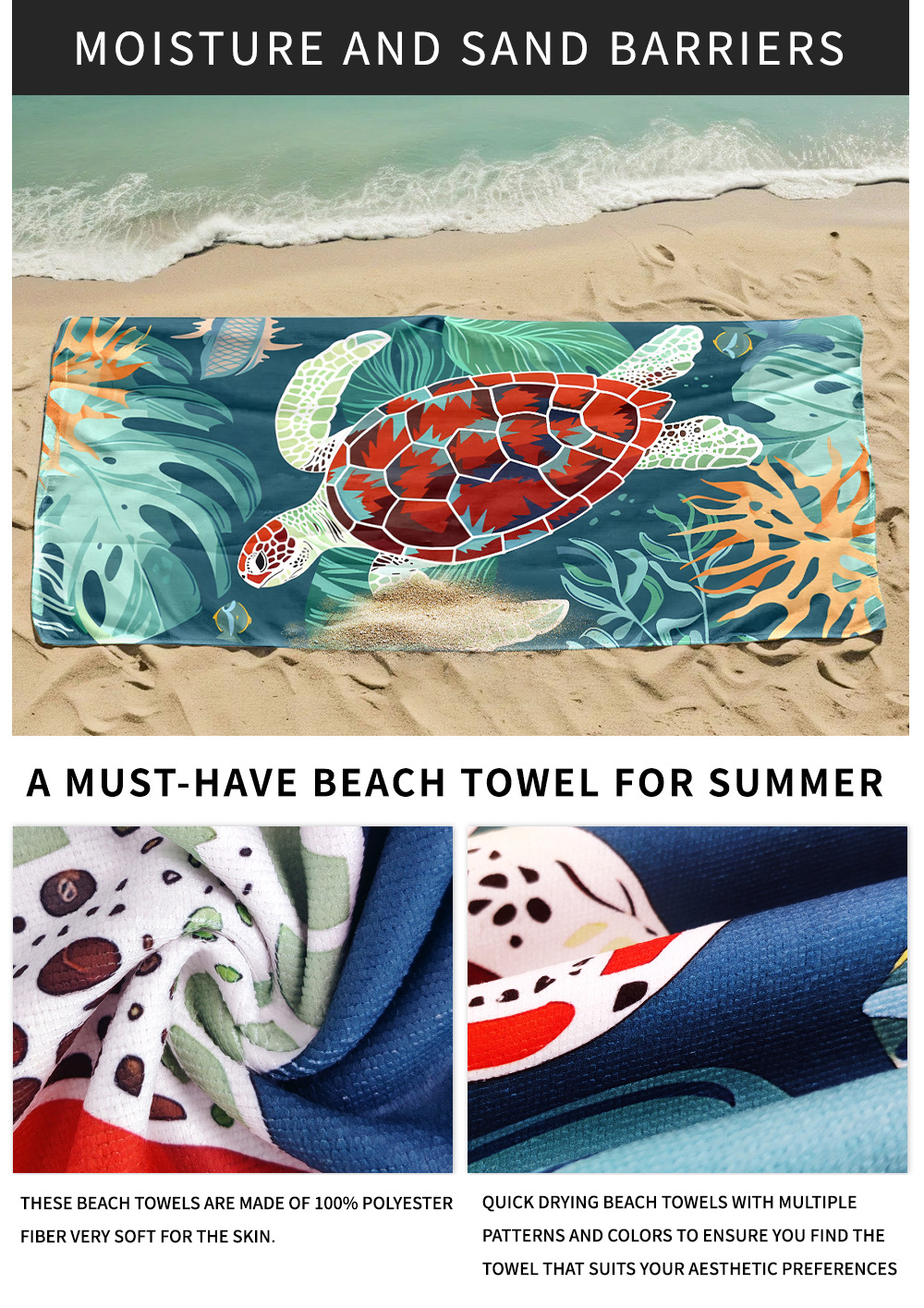 m148 new amazon exclusive for cross-border turtle beach towel printed beach towel seaside absorbent large bath towel 中文版
