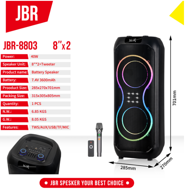 jbr-8803 double 8-inch bluetooth audio 中文版